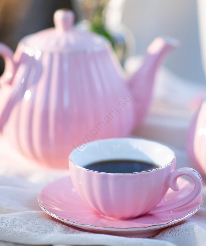 15-delars kaffeservis i porslin, rosa | Lampmani