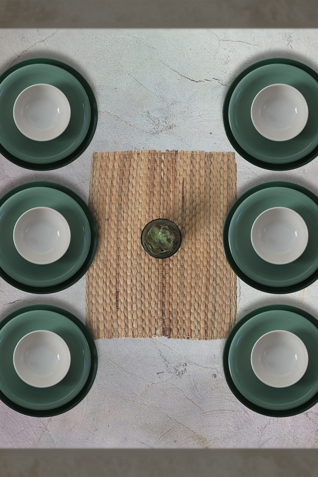 18-delars matservis, grön/vit, i keramik | Lampmani