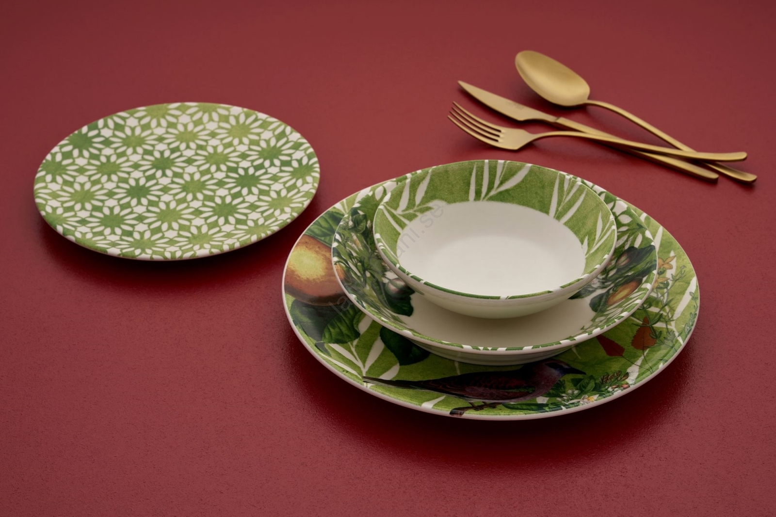 24-delars middagsservis, grön/vit, i keramik | Lampmani
