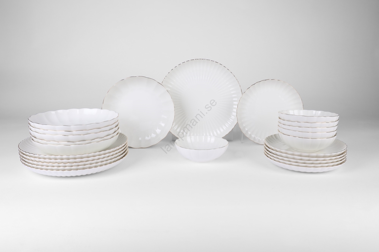 24-delars middagsservis, vit/guldig, porslin | Lampmani