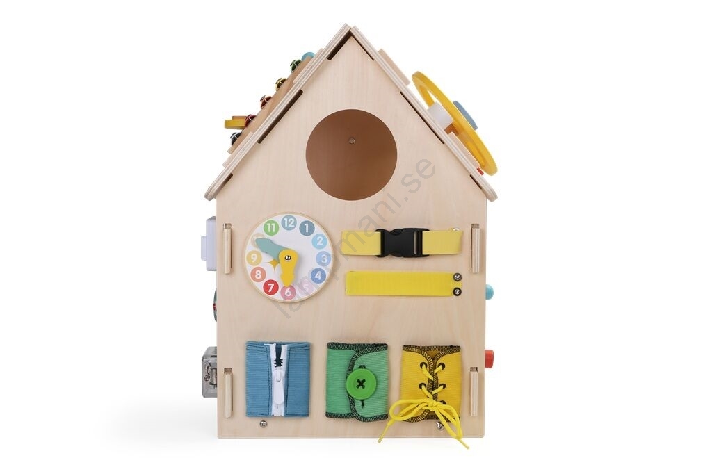 • Detta lilla hus erbjuder massor av skoj som hjälper ditt barn att utveckla sin fingerfärdighet, nyfikenhet och framför allt finmotorik.