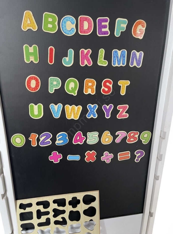 • Innehåller en magnetisk tavla med bokstäver och siffror och är utrustad med en rutschkana när den är utfälld.