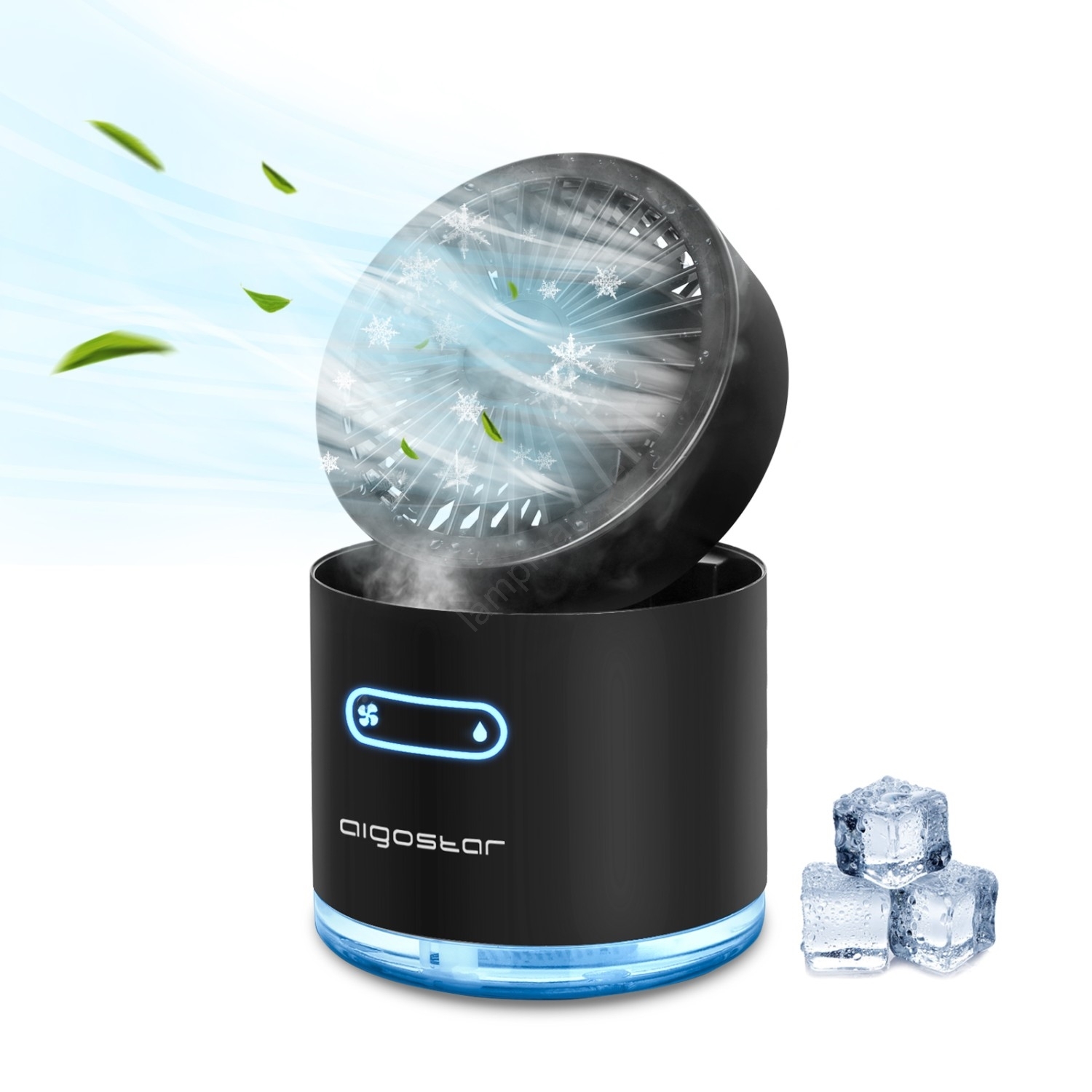 Aigostar - Trådlös mini bordfläkt med mist-effekt 10W/5V svart | Lampmani