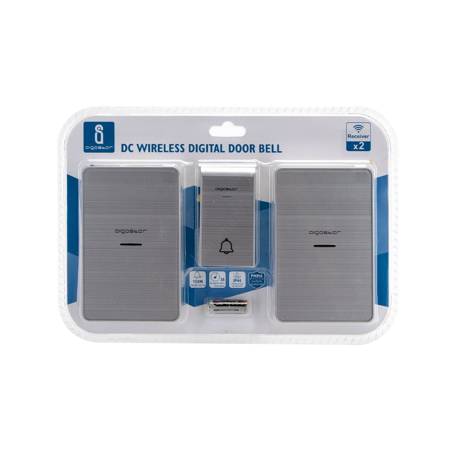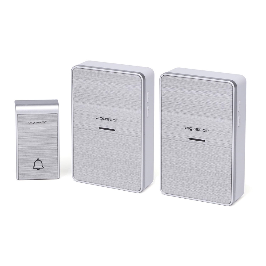 Aigostar - KIT 2x Trådlös dörrklocka 3xAA IP44 silver | Lampmani