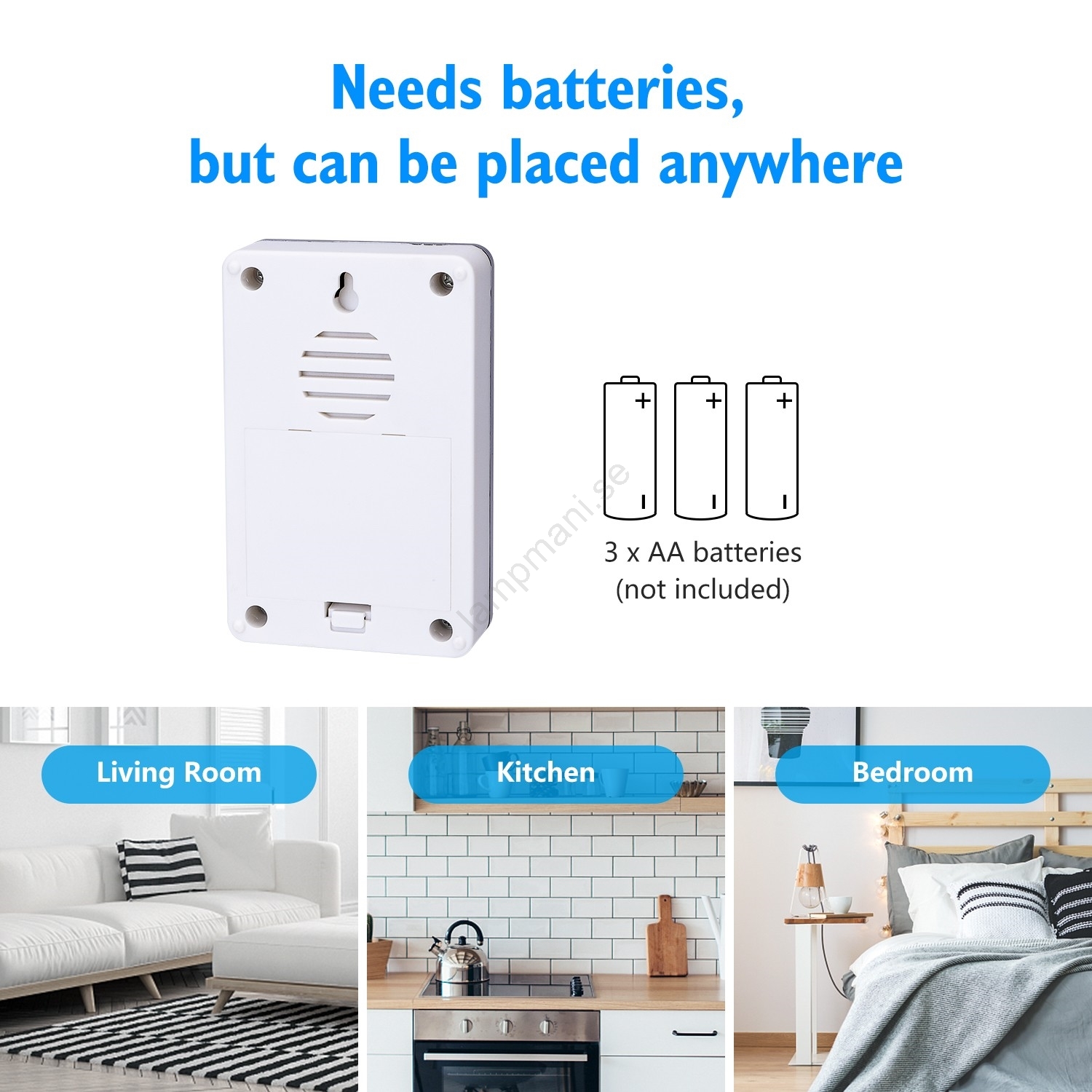 • Strömförsörjning för dörrklockan: 3x AA (batterier ingår ej).