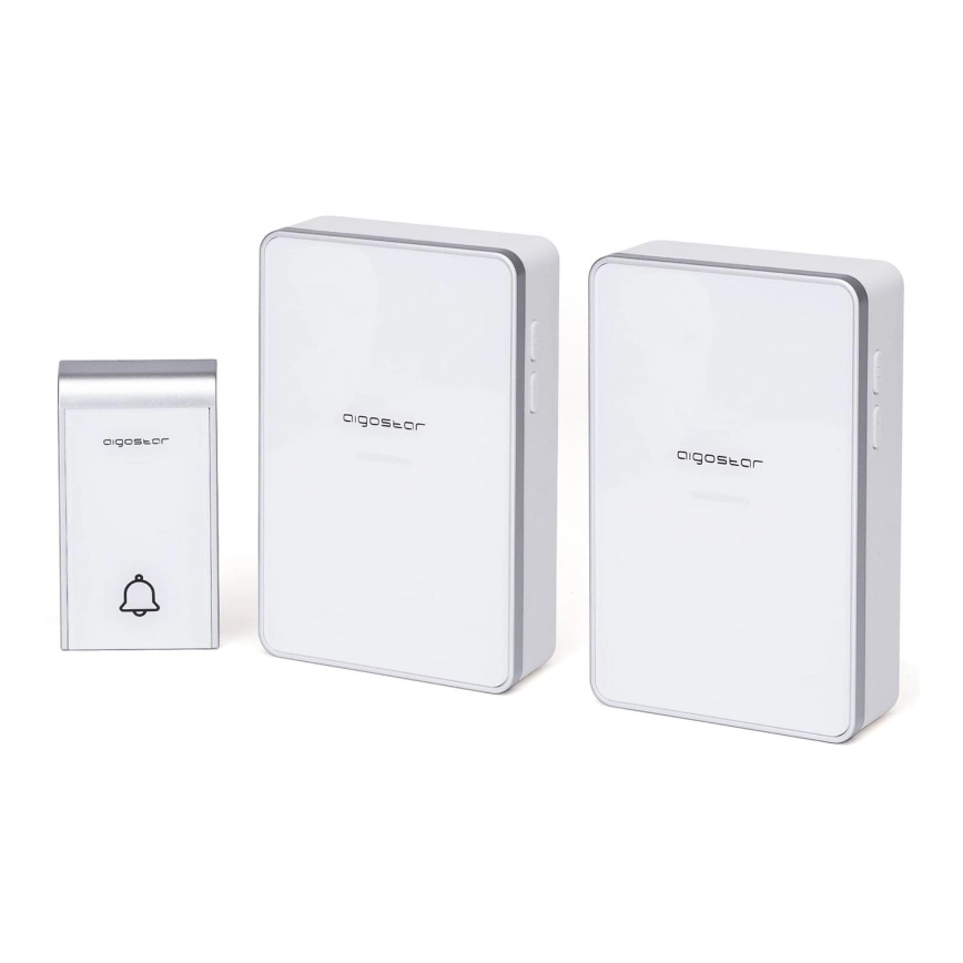 Aigostar - KIT 2x Trådlös dörrklocka 3xAA IP44 vit | Lampmani