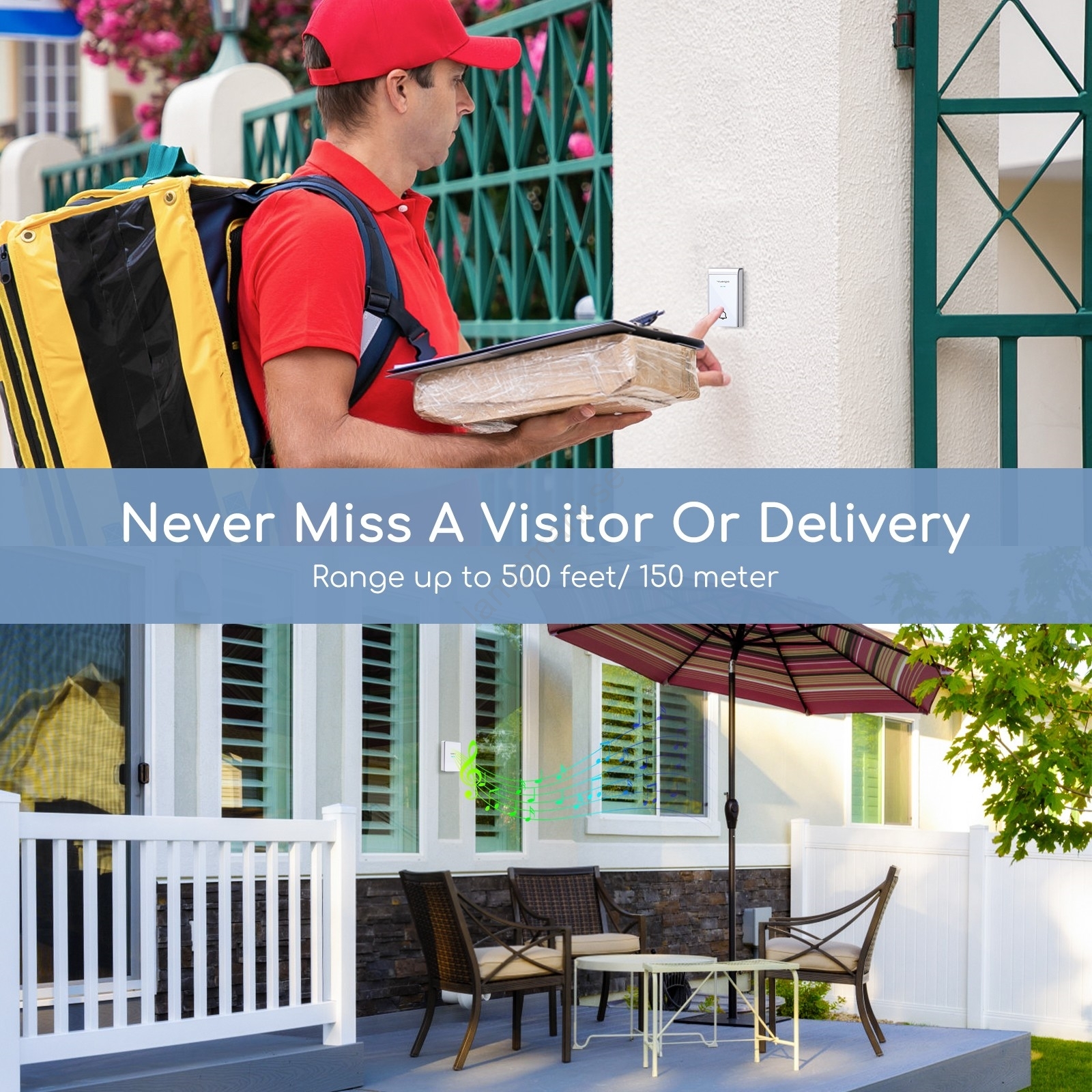• Två trådlösa dörrklockor med en utomhusknapp.