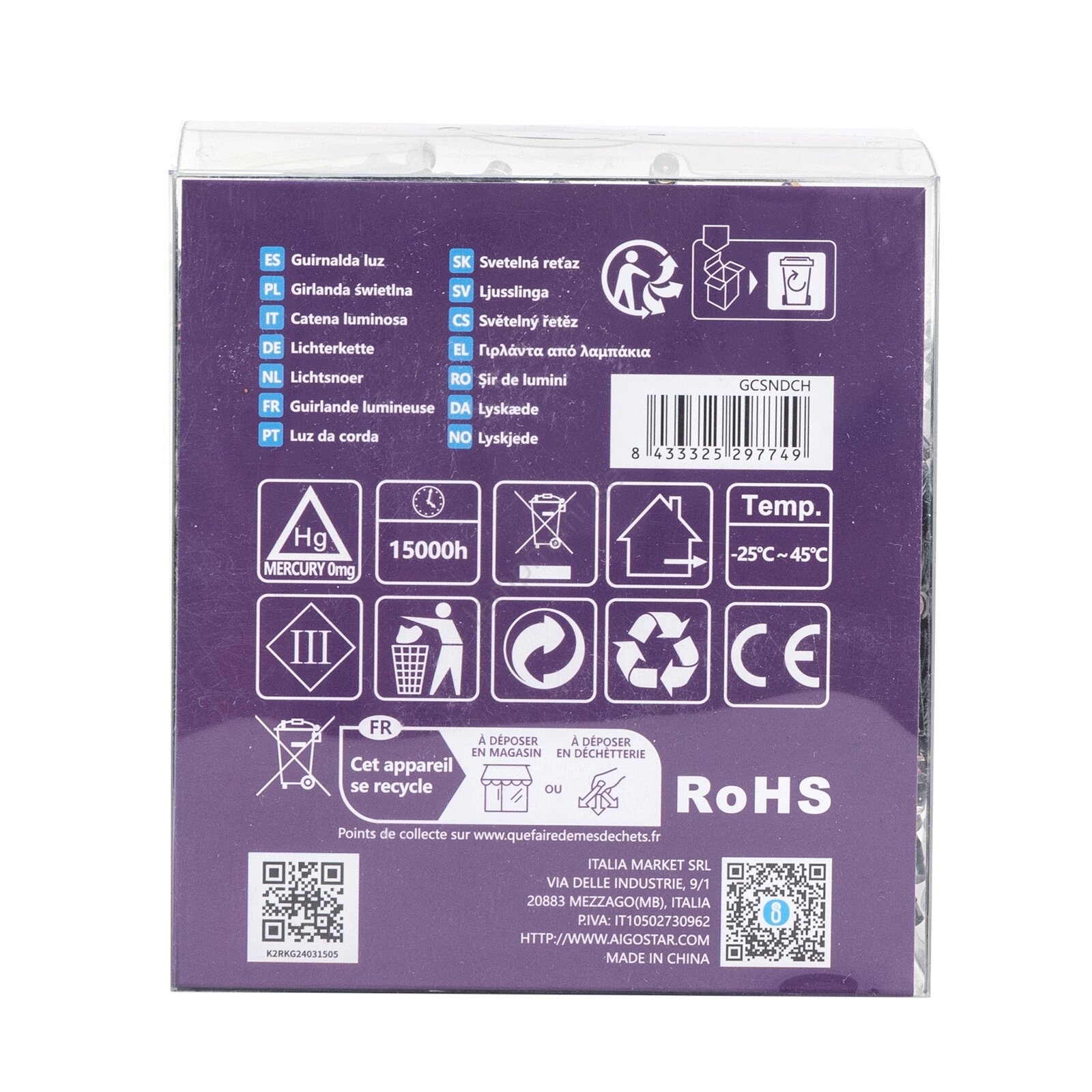 Aigostar -LED utomhusljusslinga 300xLED/8 lägen 3xAA 15,3m IP44 flerfärgad | Lampmani