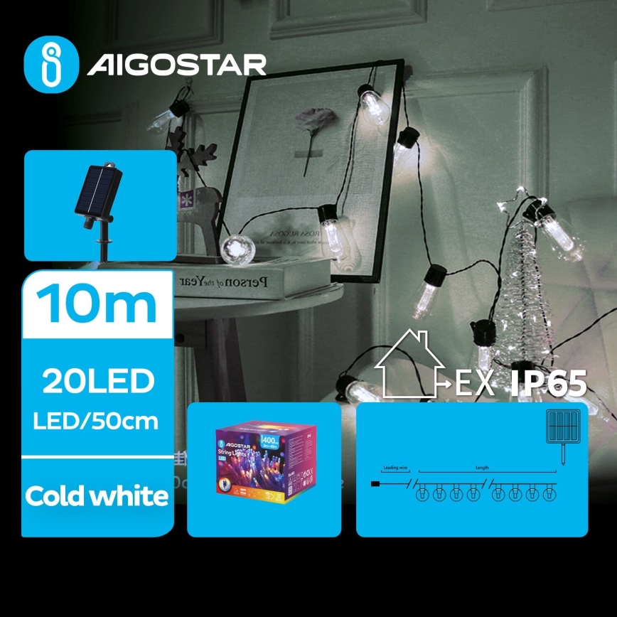 Aigostar - LED solcellsljusslinga 20xLED/8 funktioner 11,5 m IP65 kallvit | Lampmani
