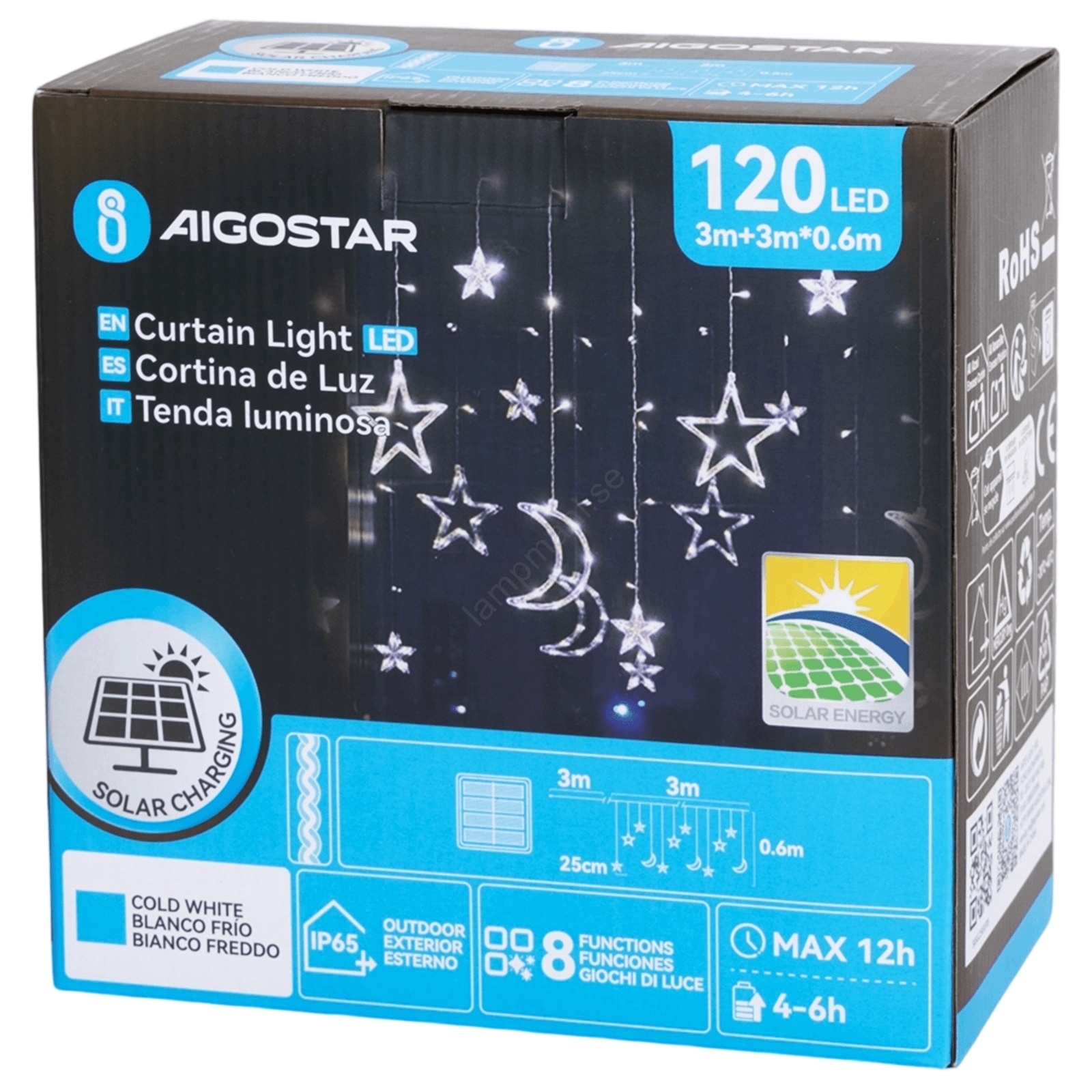 Aigostar - LED solcellsdriven julslinga 120xLED/8 lägen 3x0,6m 500 mAh IP65 kallvit | Lampmani
