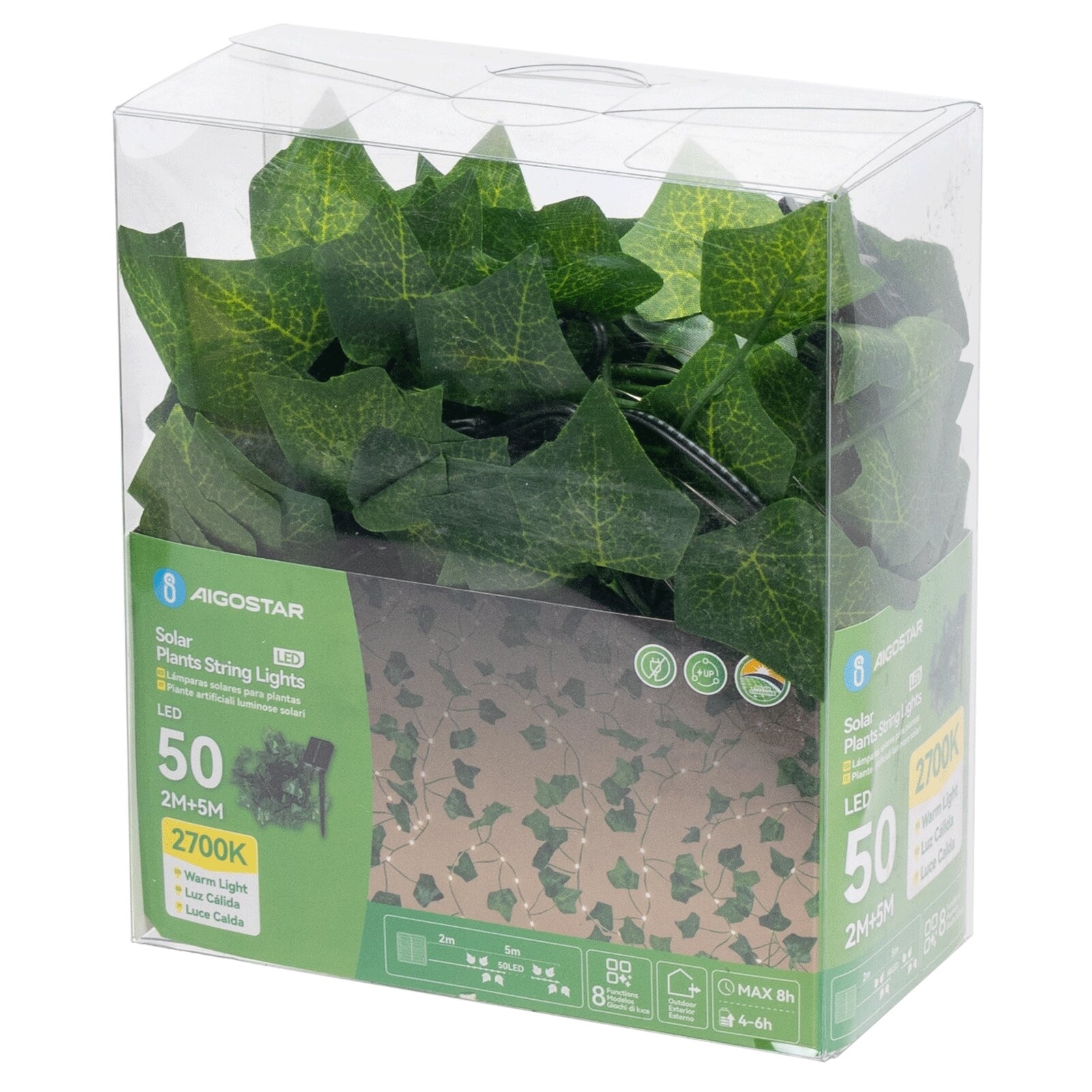 Aigostar LED solcellsljusslinga 50 LED/7m IP65 varmvit ivy | Lampmani