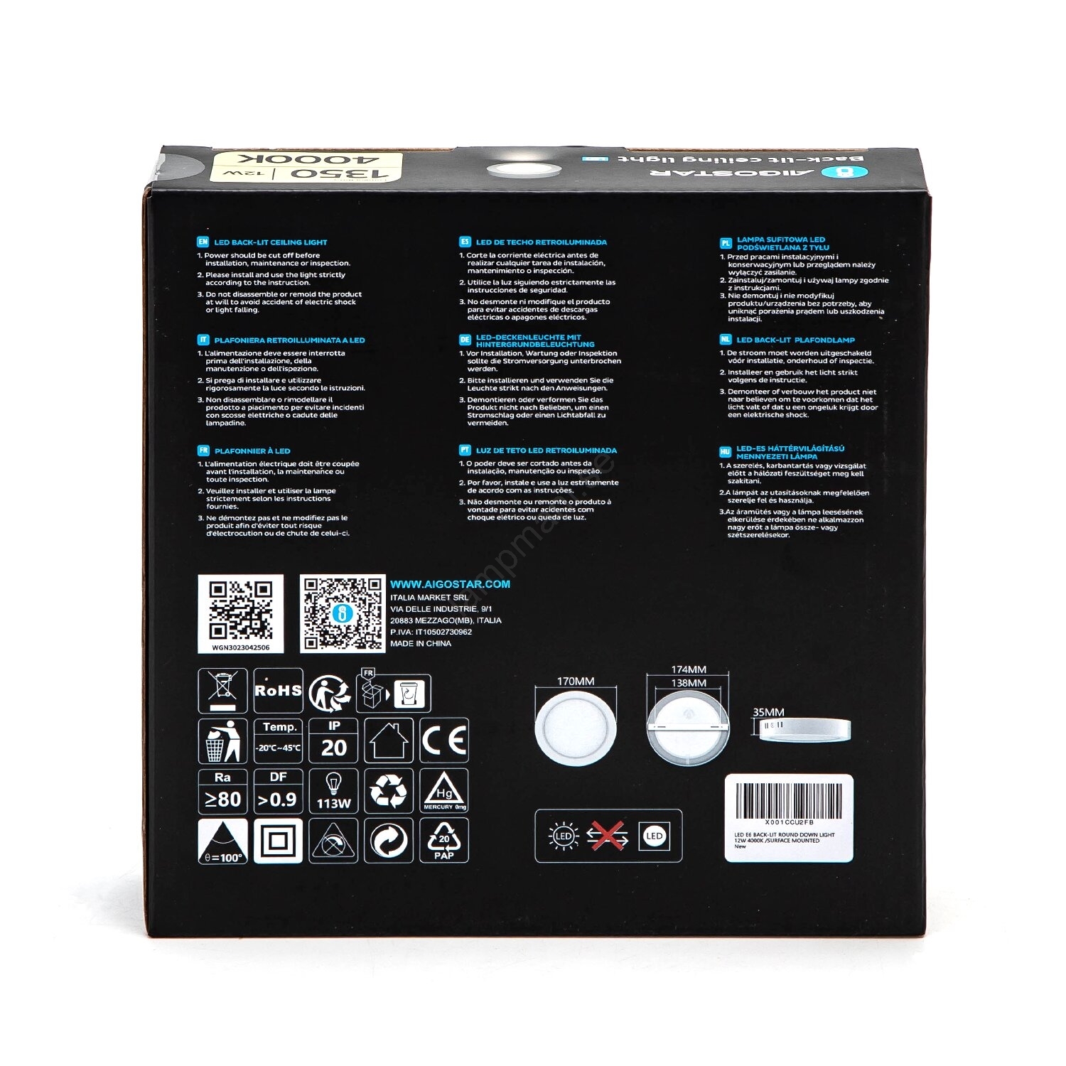 • Aigostar - LED Fäst taklampa LED/12W/230V diameter 17,4 cm 6500K vit