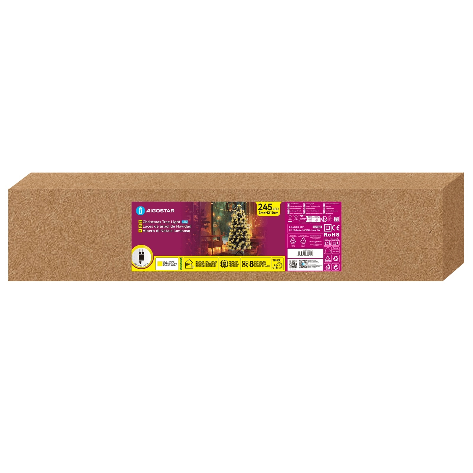 Aigostar - LED utomhus julgran 245 LED/6W/230V/8 ljuslägen 210 cm IP44 varmvit | Lampmani