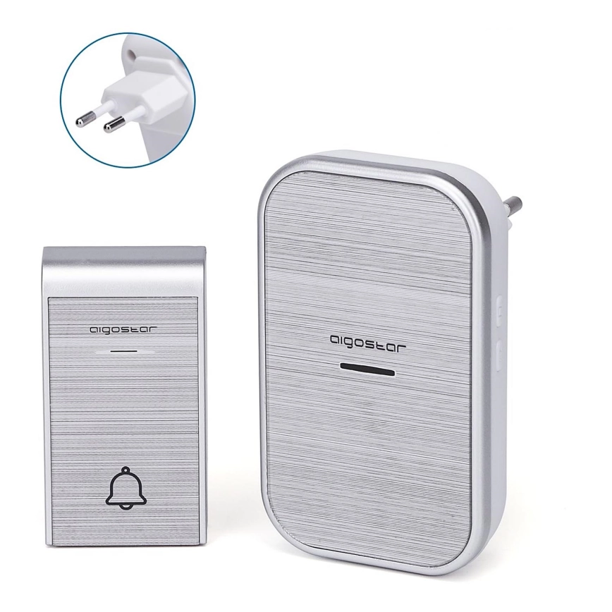 Aigostar - Trådlös dörrklocka för vägguttag 230 V/12 V, IP44, silverfärgad