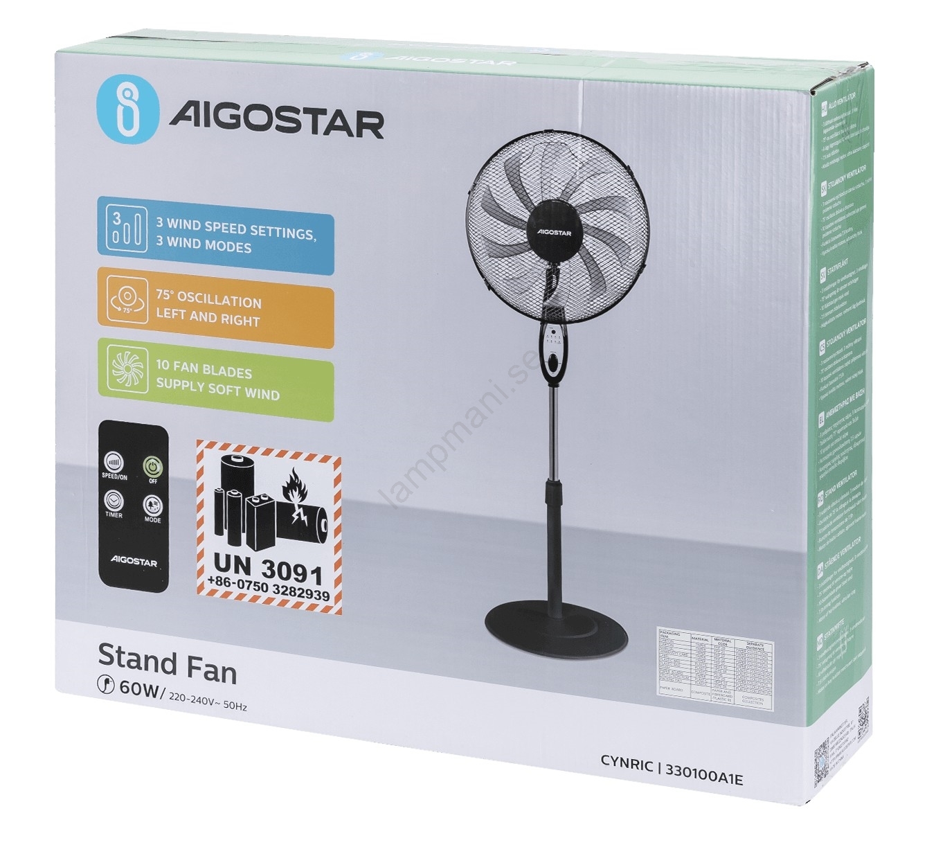 Aigostar - Stativfläkt 60W/230V svart + fjärrkontroll | Lampmani