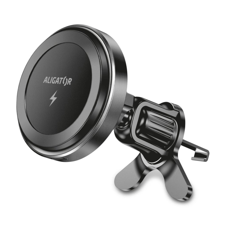 Aligator AMS05BK - Magnetisk bilhållare för mobil med 15 W Qi trådlös laddning och MagSafe, svart