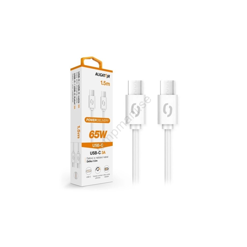 Aligator DATKP49 - USB-kabel USB-C till USB-C, 65 W Power Delivery, 1,5 m, vit | Lampmani