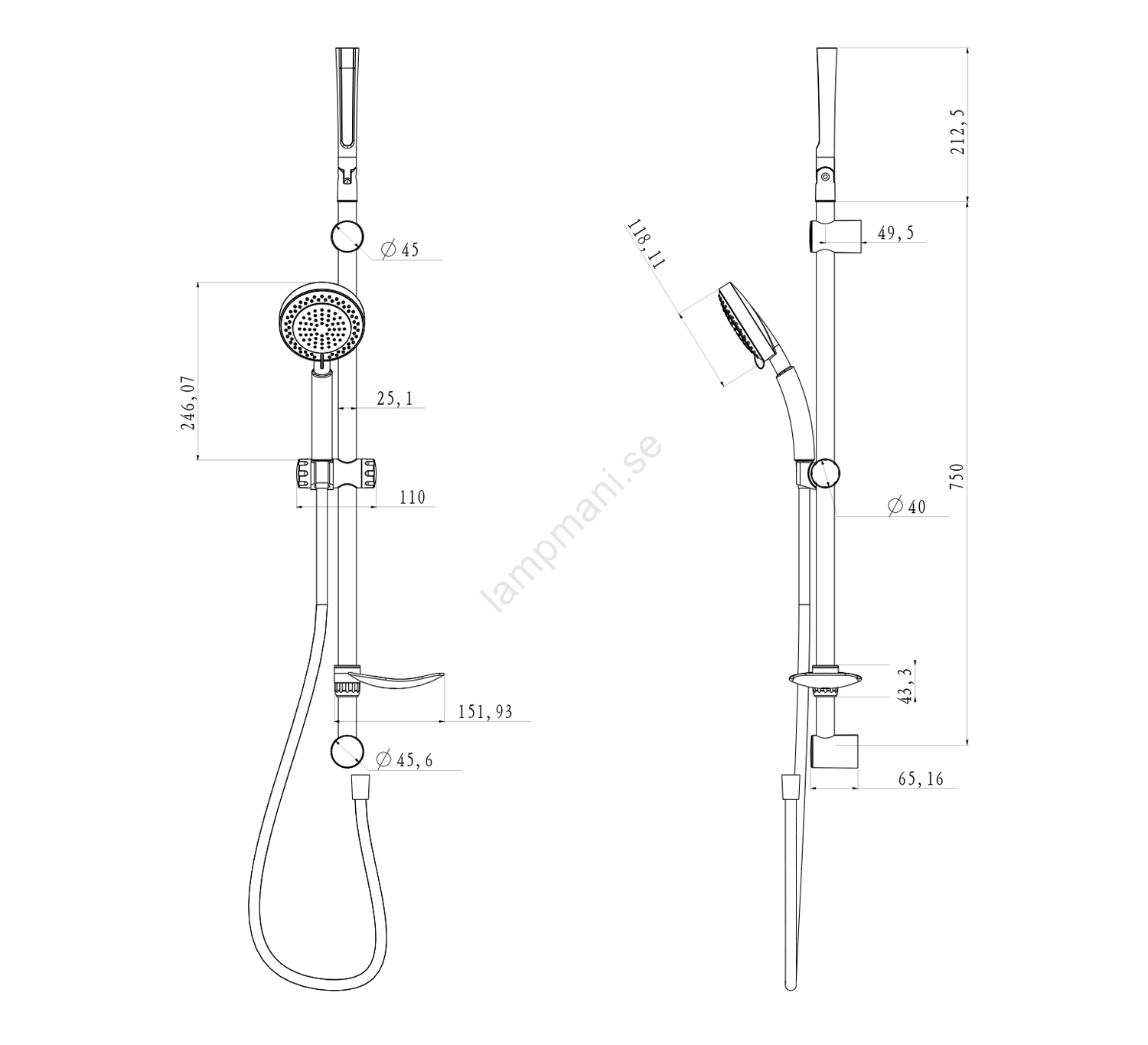 • Setet innehåller: duschhuvud, handduschhållare, tvålkopp och en 150 cm lång slang i rostfritt stål.
