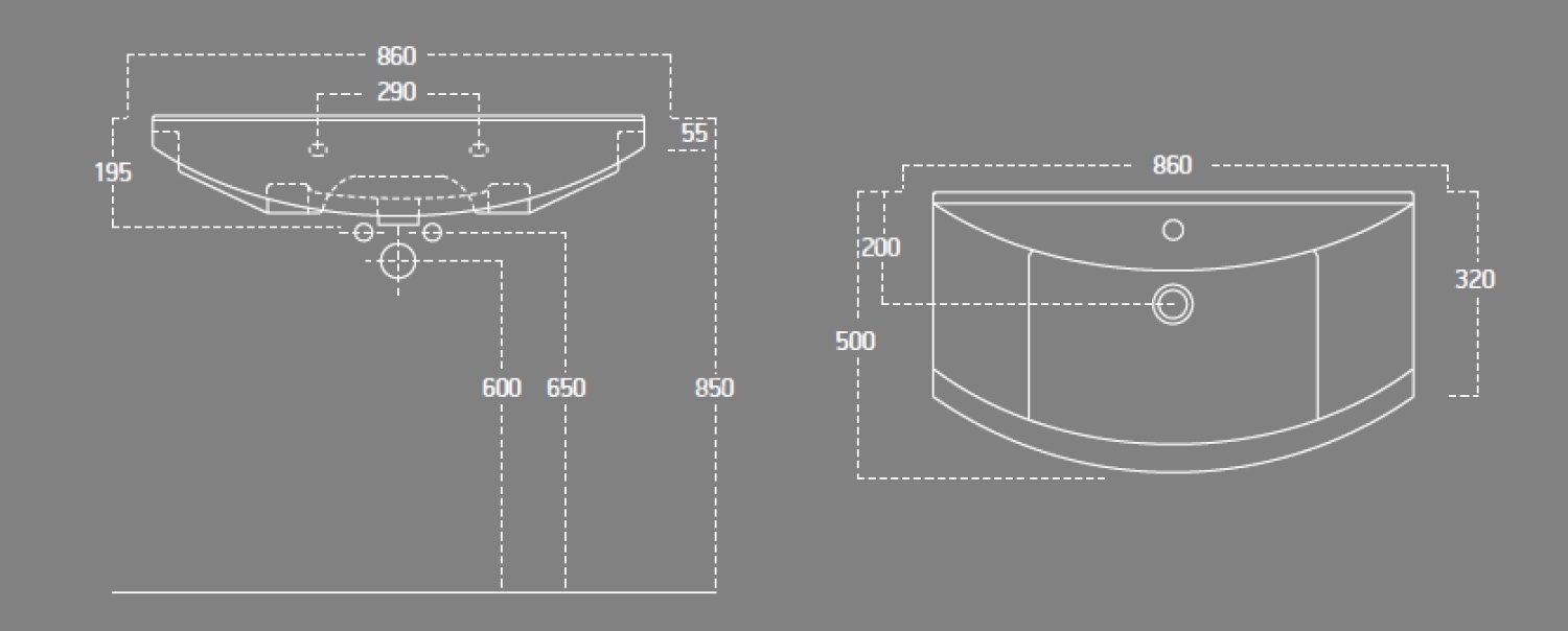 • Keramiskt tvättställ med måtten 86x50 cm.