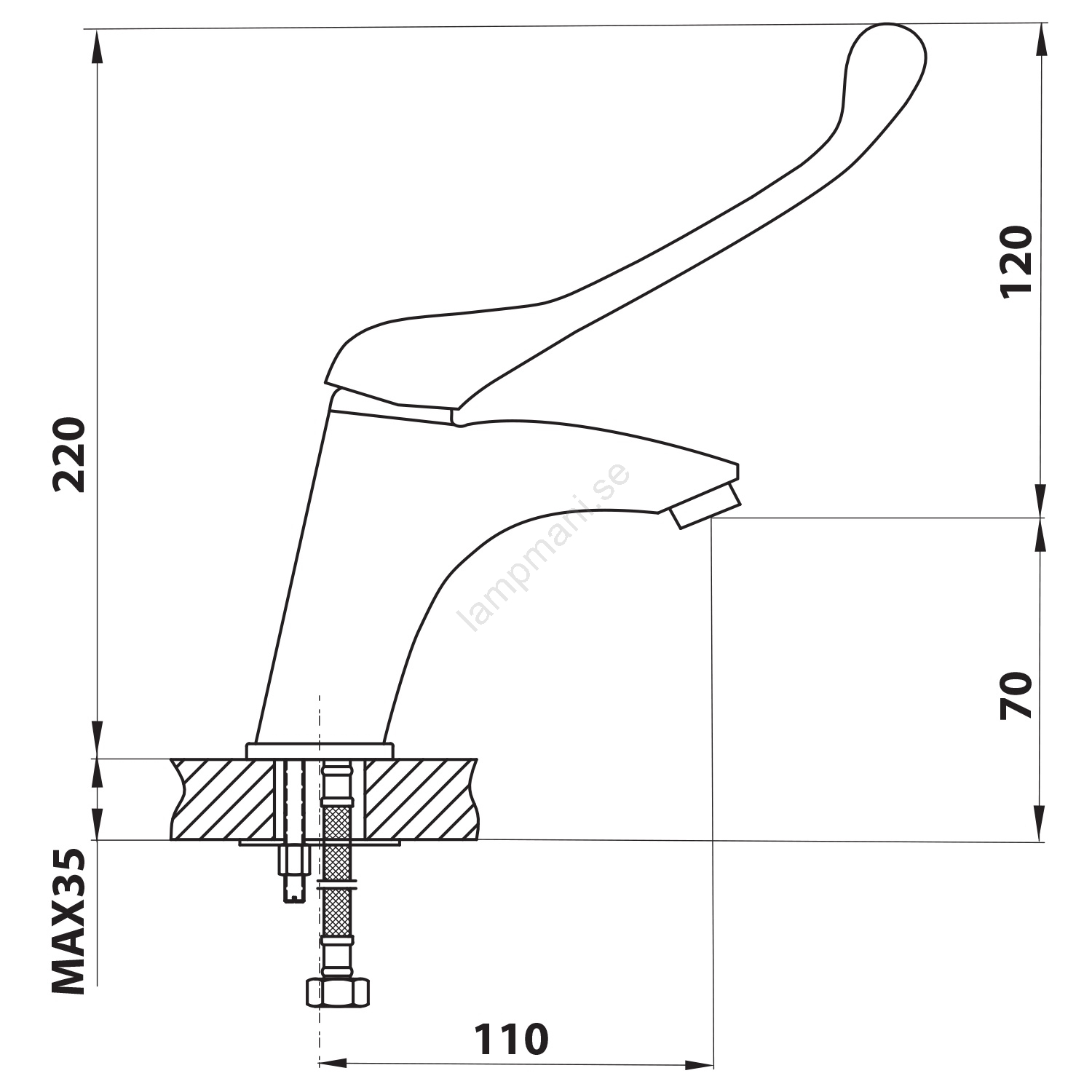 • Stående tvättställsblandare avsedd för medicinskt bruk.