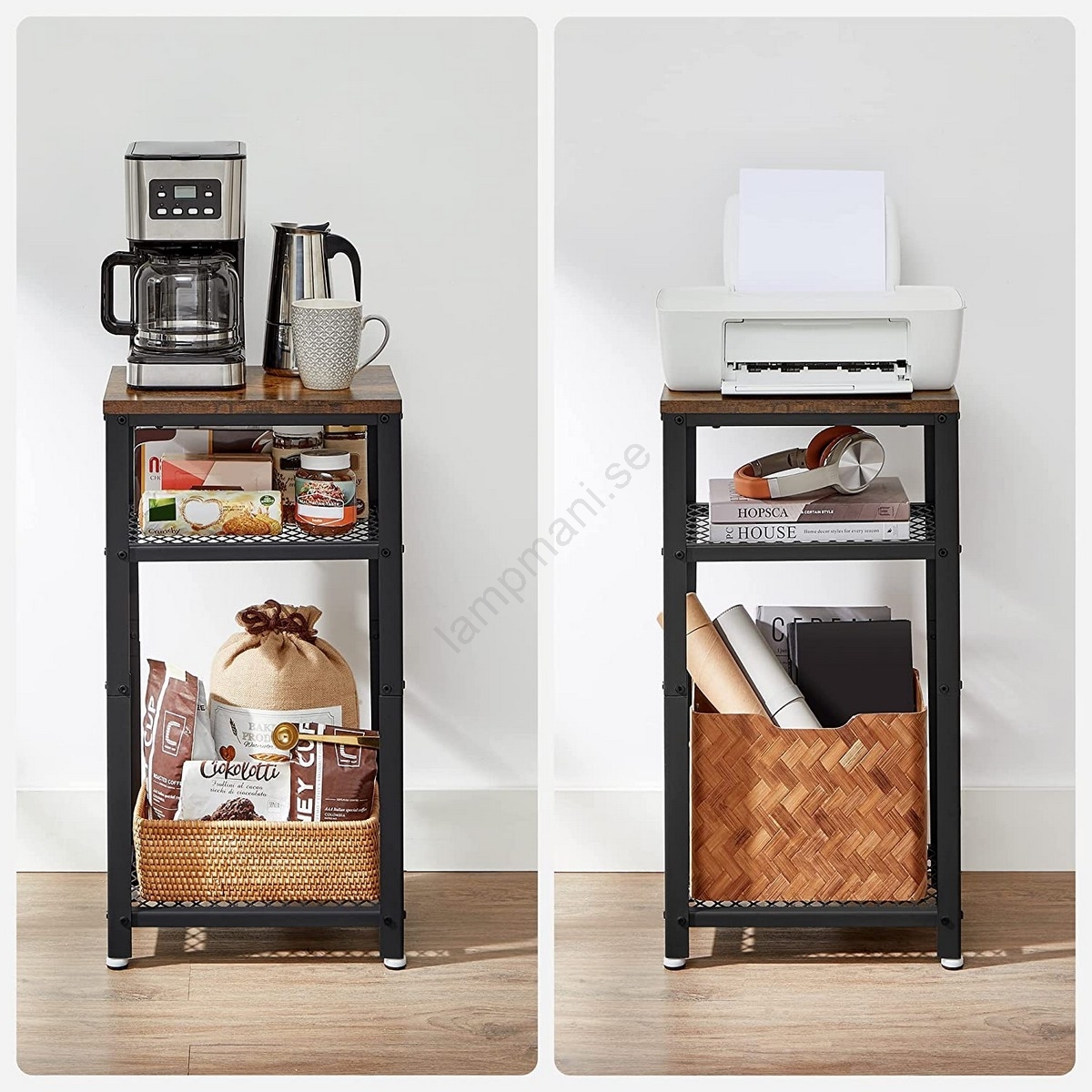 • Tack vare sin slanka form tar det lite plats på golvet samtidigt som det erbjuder gott om förvaringsutrymme med tre hyllor.