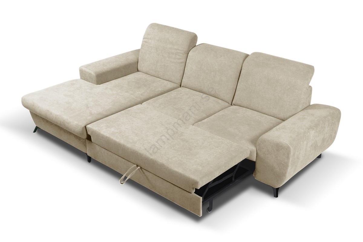 • Utdragbar L-formad hörnsoffa ALTA, vänstervänd, beige, med förvaring