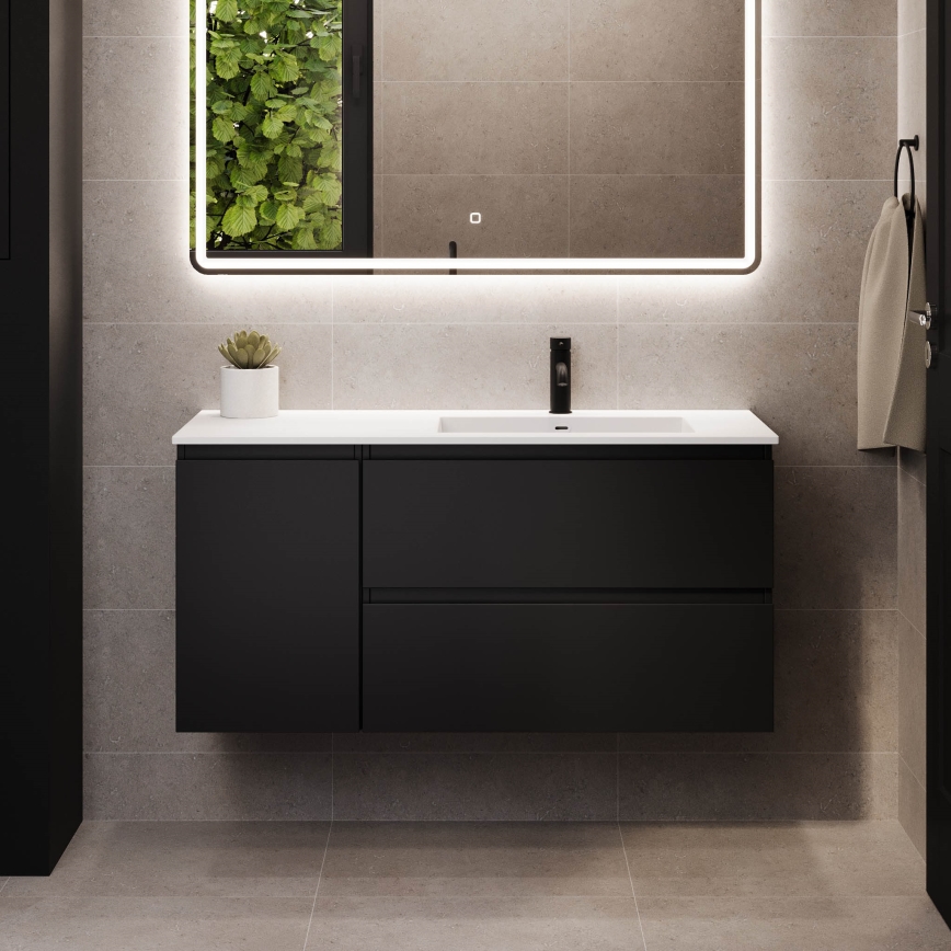Badrumsskåp med tvättställ HELSINKI 115 cm, höger/svart | Lampmani