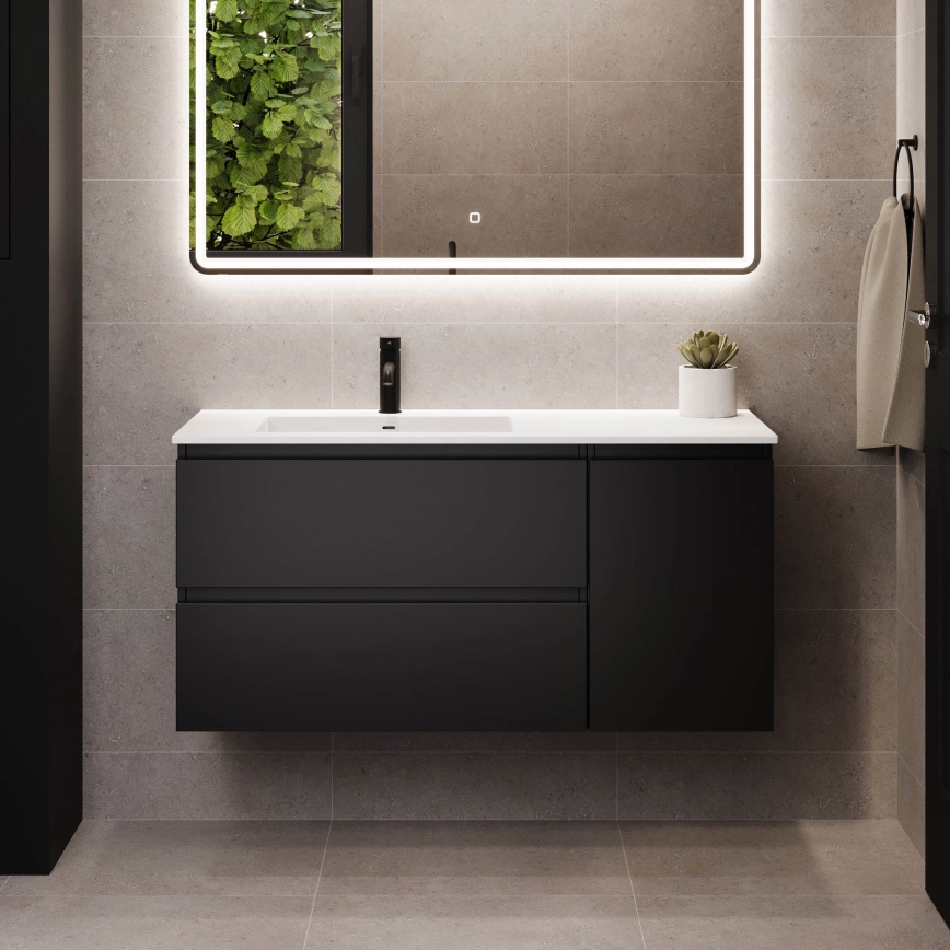 • Badrumsskåp med tvättställ HELSINKI 115 cm, höger/svart