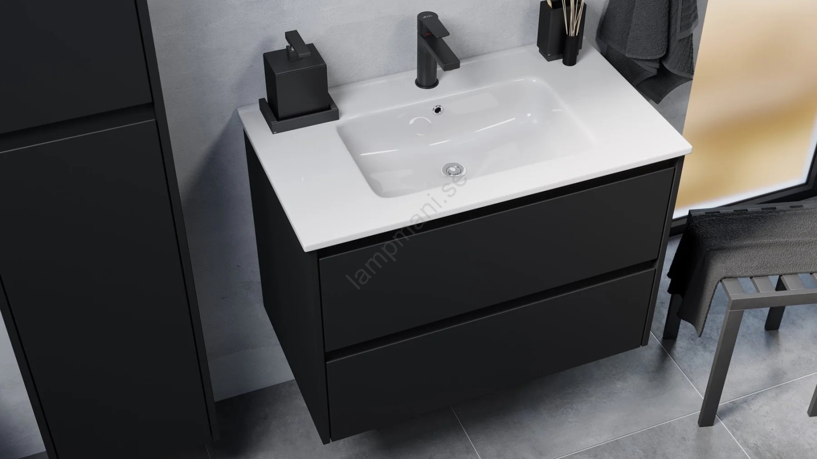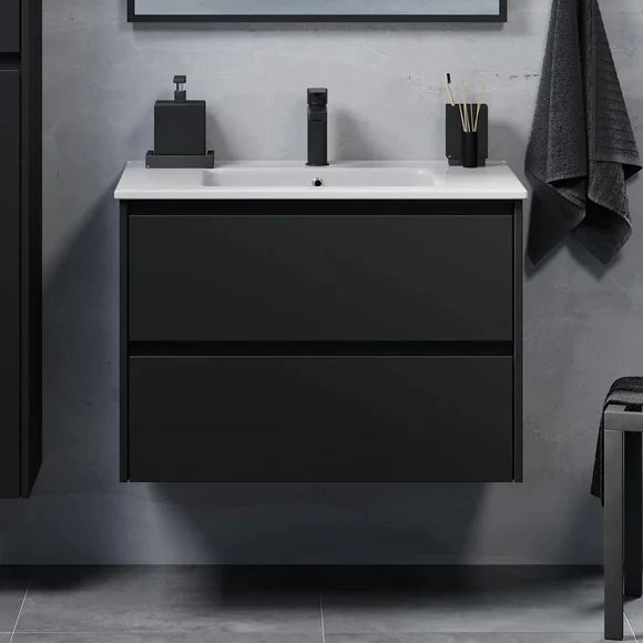 Badrumsskåp med tvättställ MOLDE 80 cm svart | Lampmani