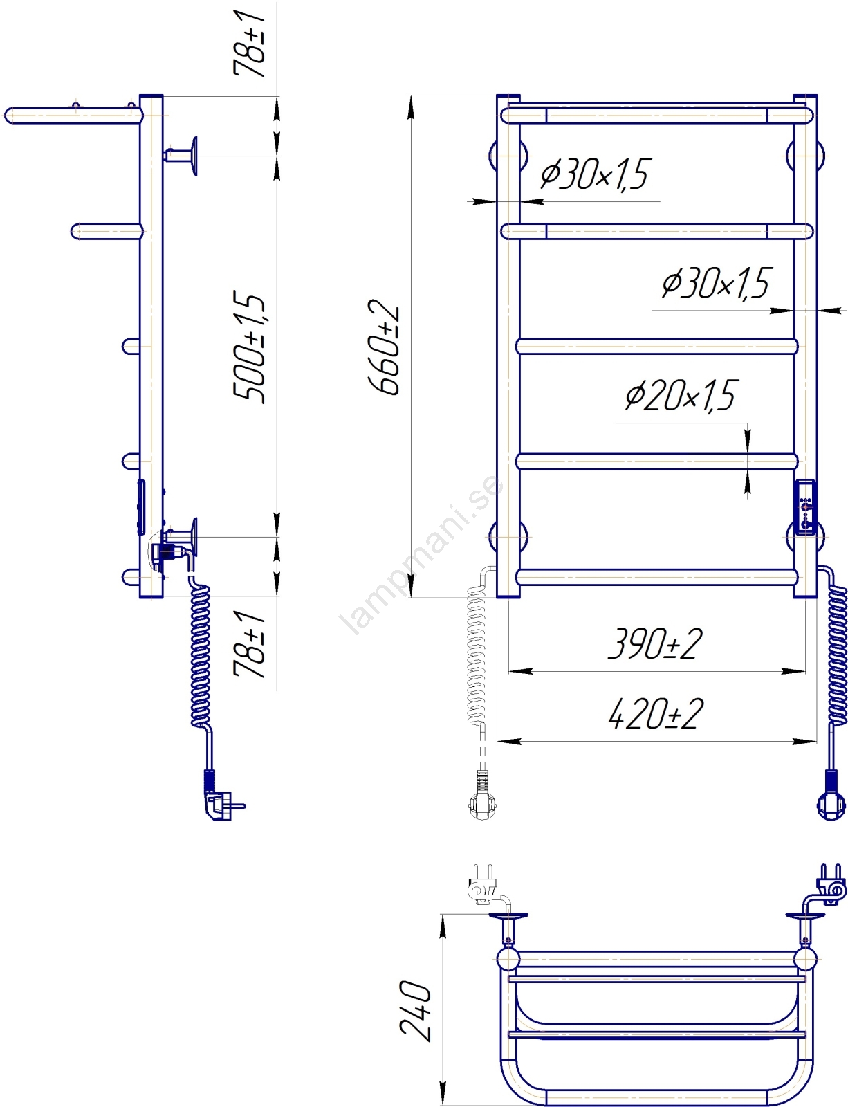 Badrumsstegradiator HOTEL 75W/230V 65x43 cm rostfritt stål/krom högerutförande | Lampmani
