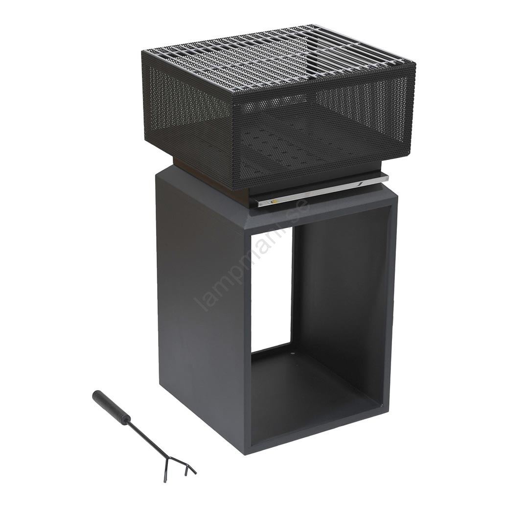 • Portabel CUBE-träbål, med fyrkantig konstruktion och förvaringsutrymme för trä, lämplig för uteplatser och trädgårdar.