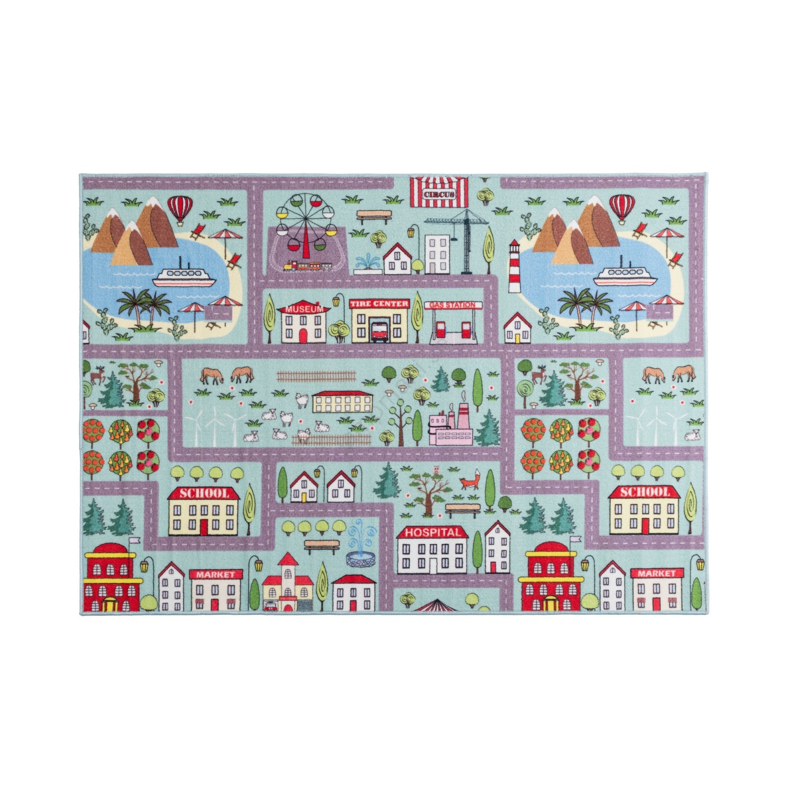 Barnmatta STELLA STREETS 120x170 cm turkos/stadsmotiv | Lampmani