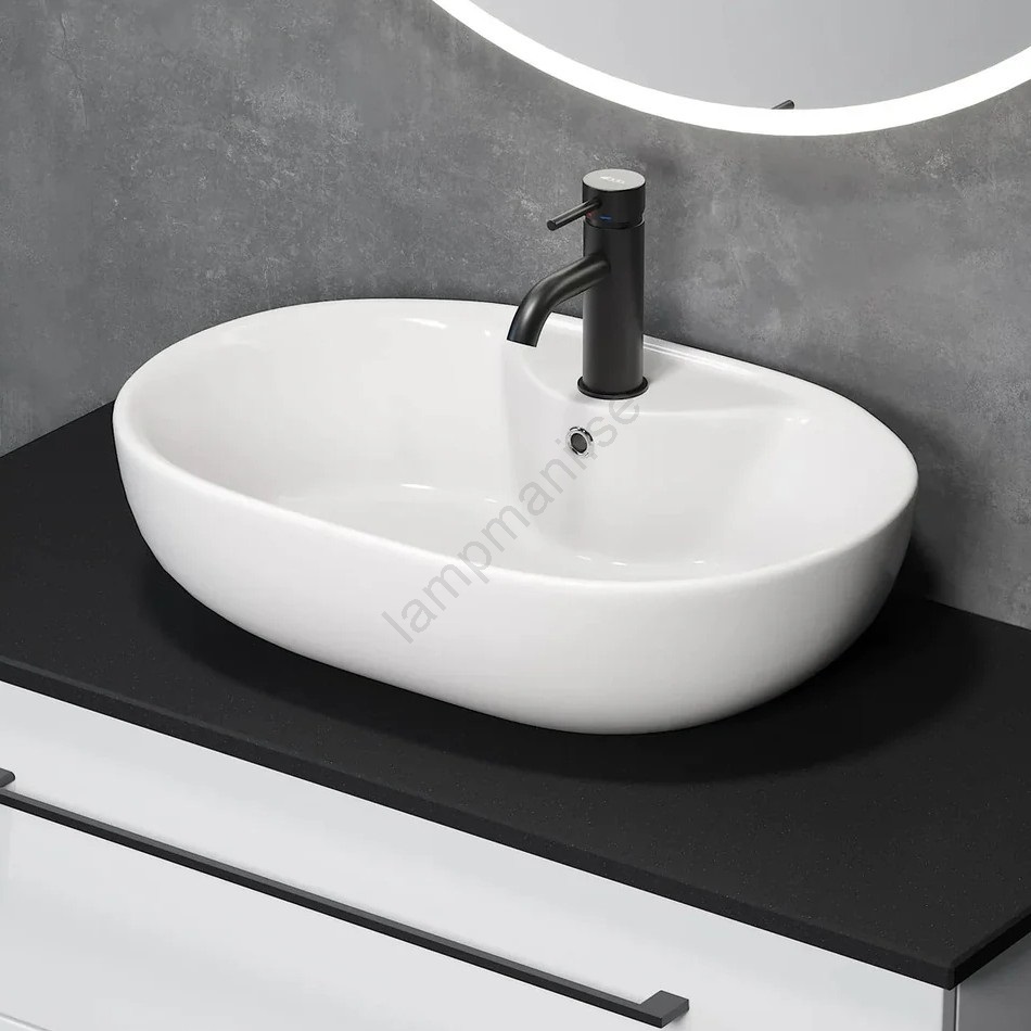 • Ovanpåliggande tvättställ TROMSO 59,5x41 cm keramik/svart