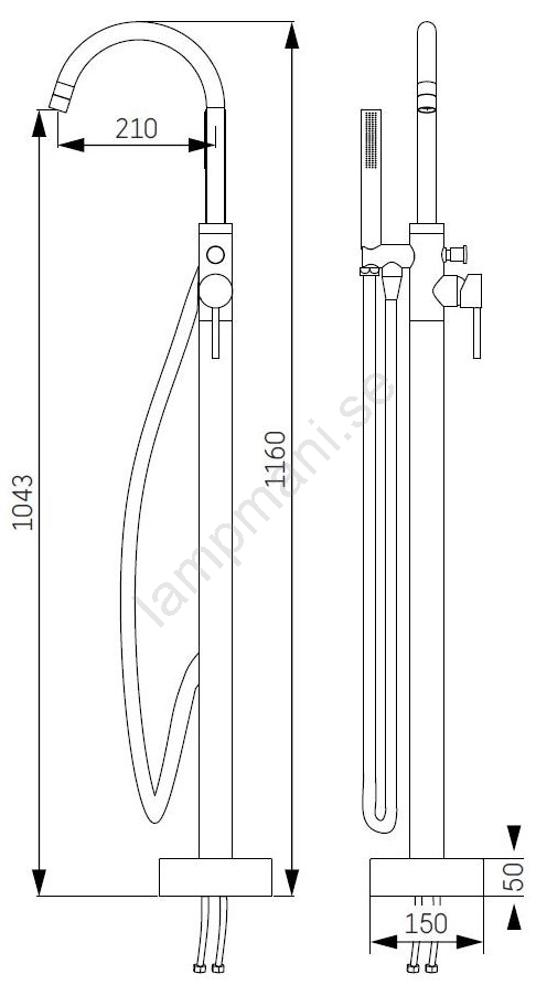 Fristående badkarsset med blandare, 116 cm, blank krom | Lampmani