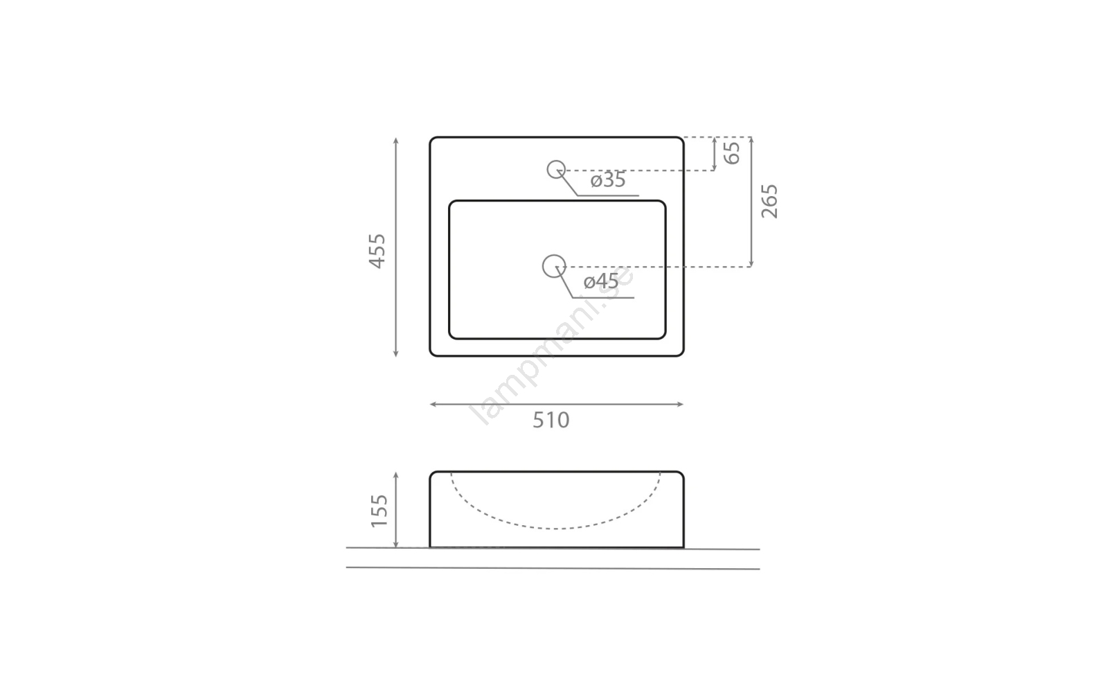 Bathco 0010 - Tvättställ för bänkskiva BOLONIA 51 x 45,5 cm porslin/vit | Lampmani