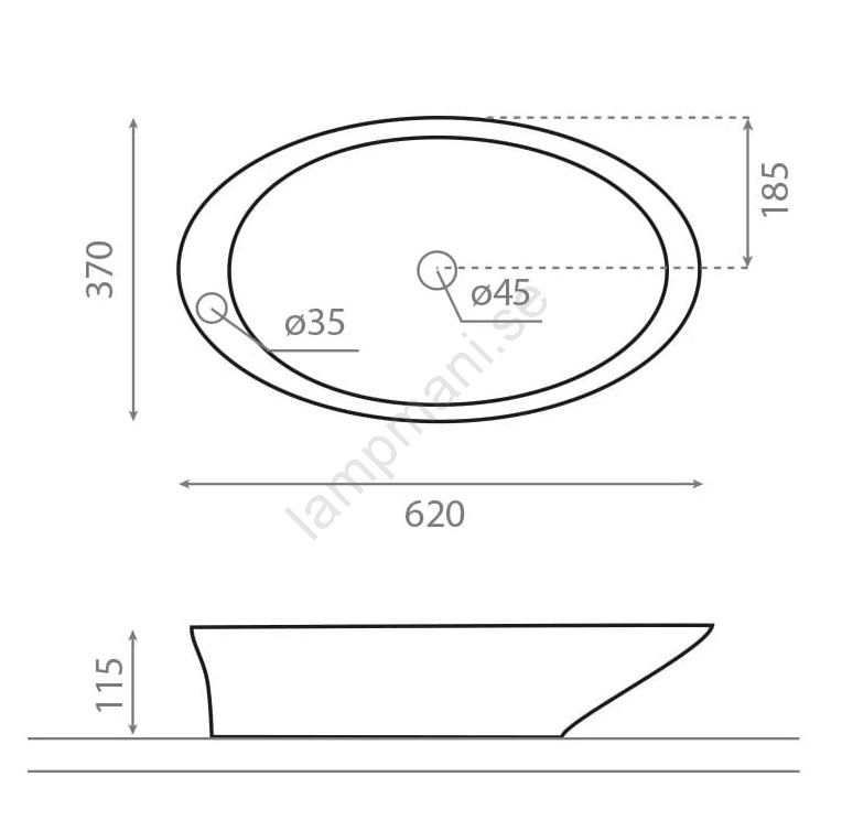 Bathco 4020 - PURE tvättställ för bänkskiva 62x37 cm porslin/vit | Lampmani