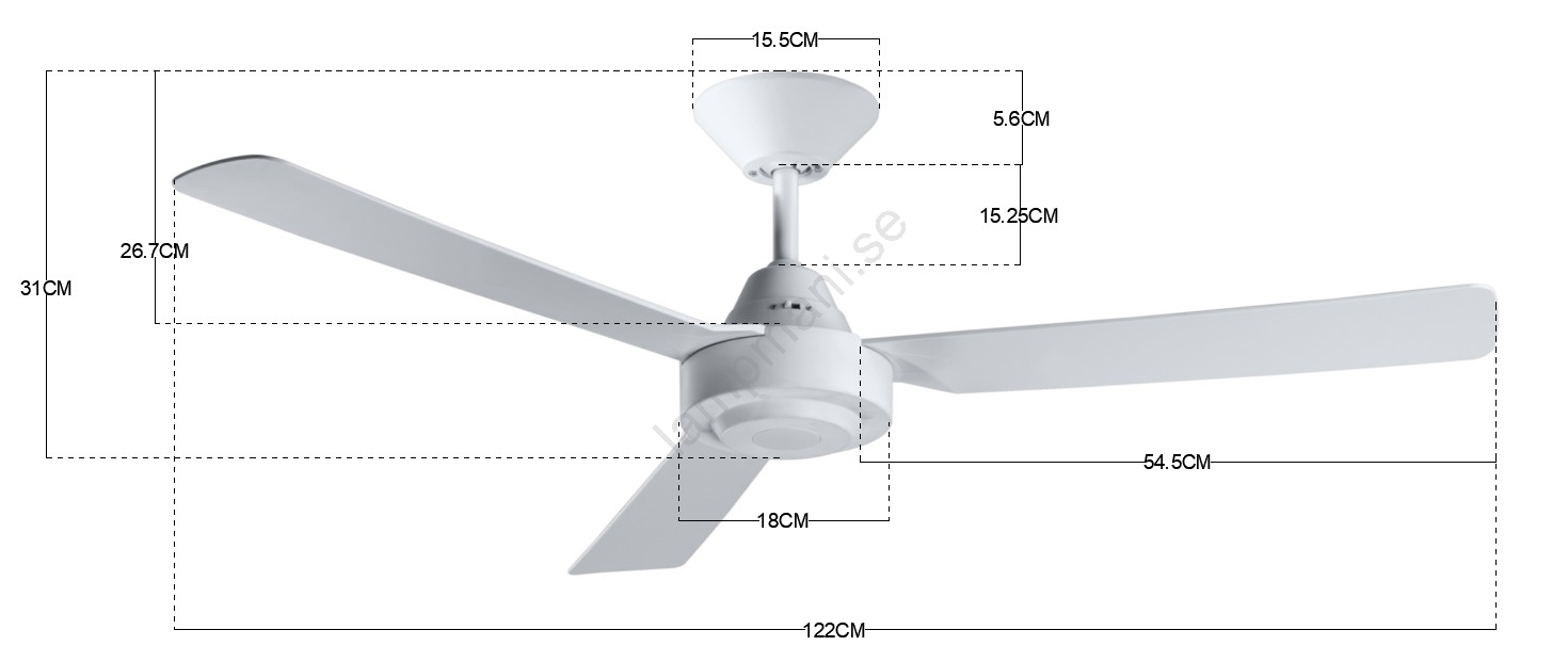 BAYSIDE 213015 - Takfläkt CALYPSO vit, med fjärrkontroll | Lampmani