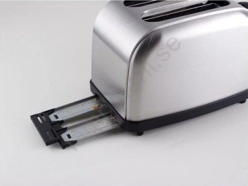 • För enkel skötsel är brödrosten försedd med en praktisk utdragbar smulbricka, och dess stabilitet på köksbänken säkerställs av halkfria gummifötter.