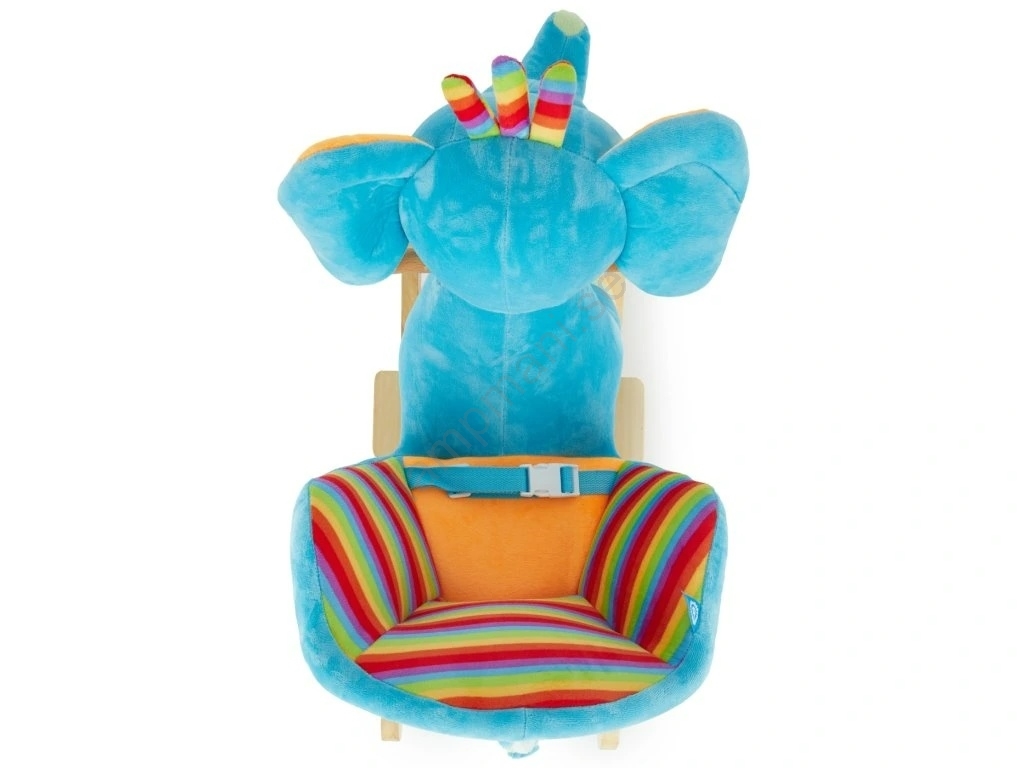 • Elefanten är utrustad med en mjuk, bekvämt vadderad sits med säkerhetsbälte som ger maximal komfort och skydd även för de minsta barnen.