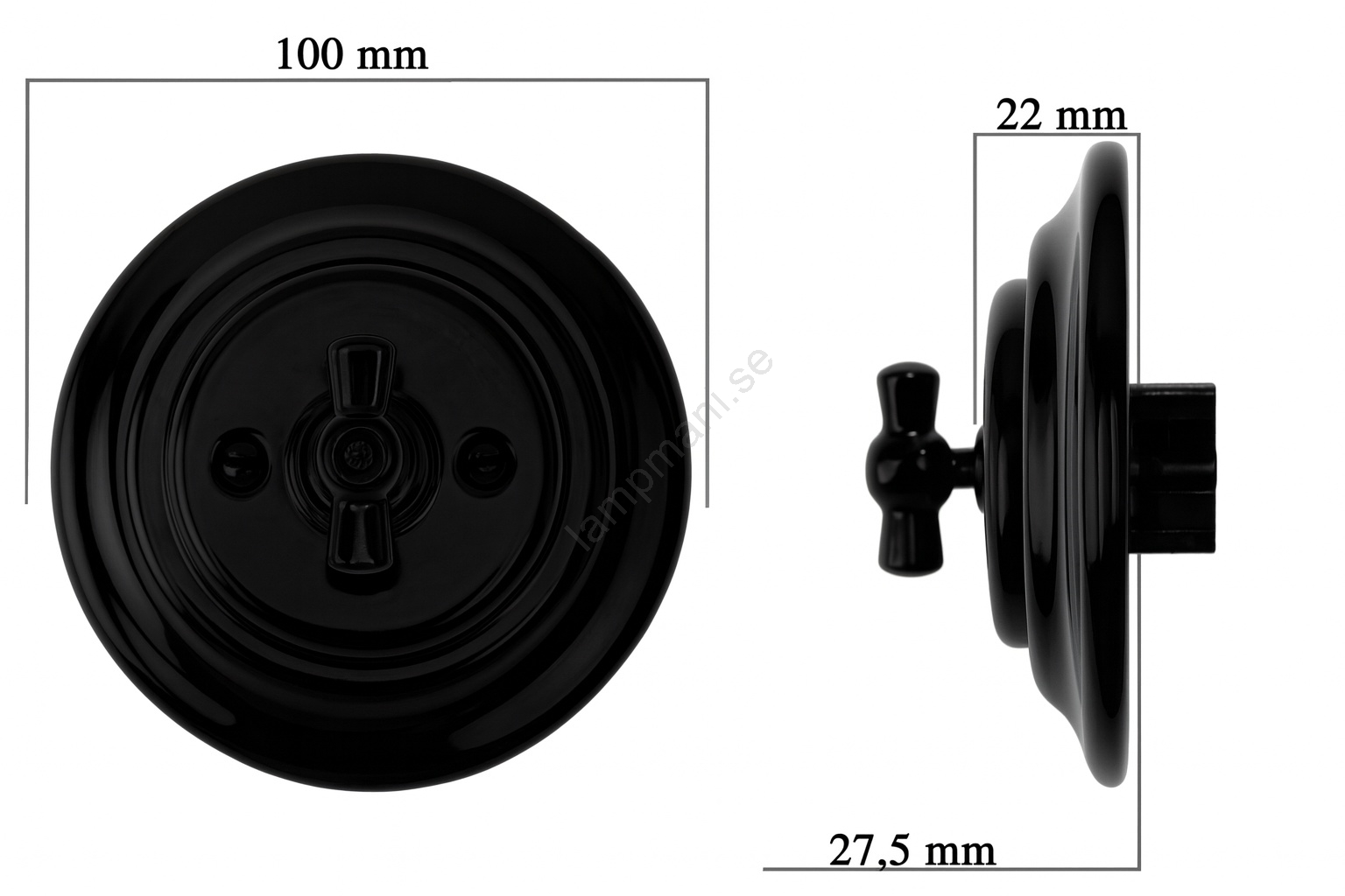 Bohemia-Design - Retro-dimmer i porslin, vridbar med ram 250V/10A, svart | Lampmani
