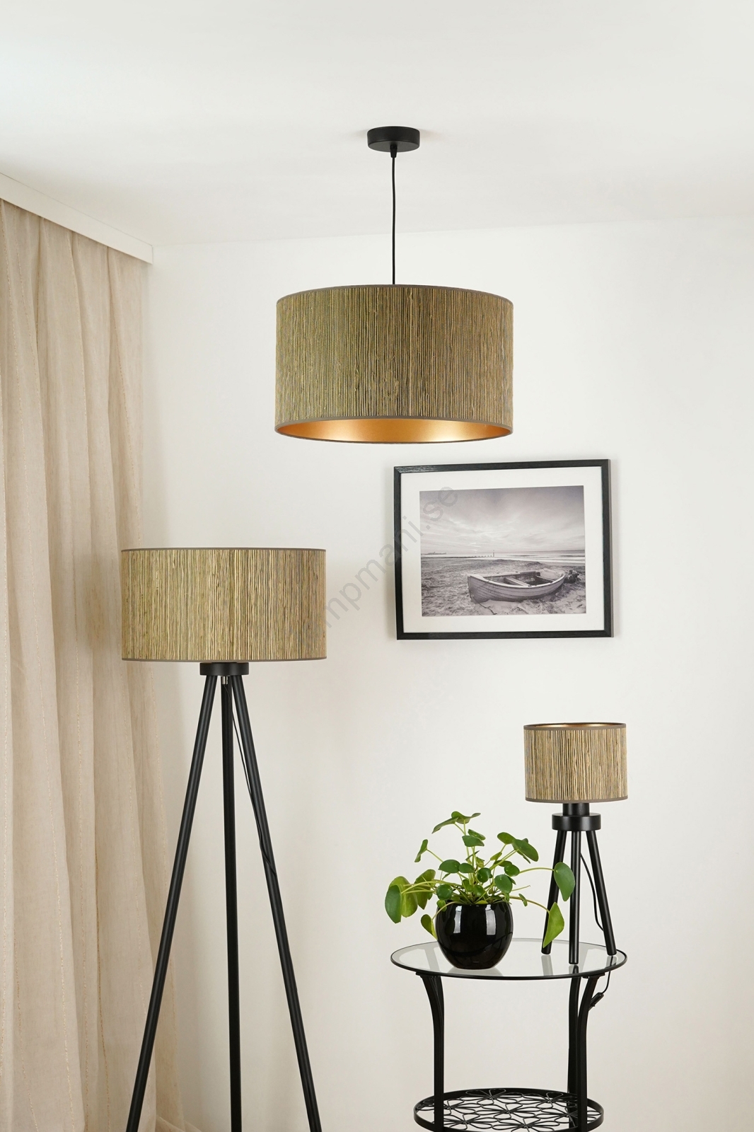 • I våra lampskärmar använder vi ett unikt naturmaterial tillverkat av en blandning av bambufibrer och kinesisk nässla, som imponerar med sin raffinerade, organiska textur och djupa, uttrycksfulla färg.