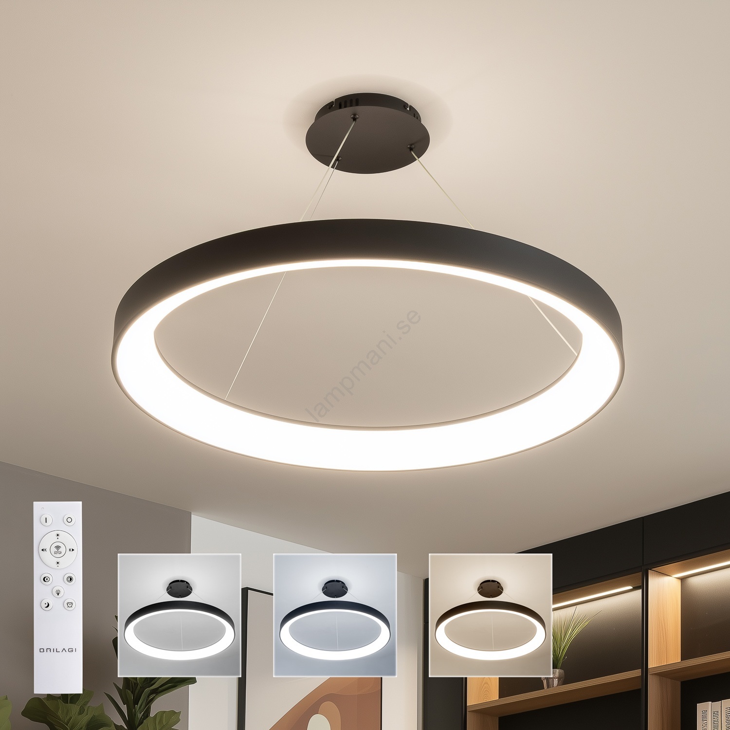 • Brilagi - LED-dimbar hänglampa på vajer FALCON II LED/108W/230V 3000-6500K diam. 80 cm svart + fjärrkontroll