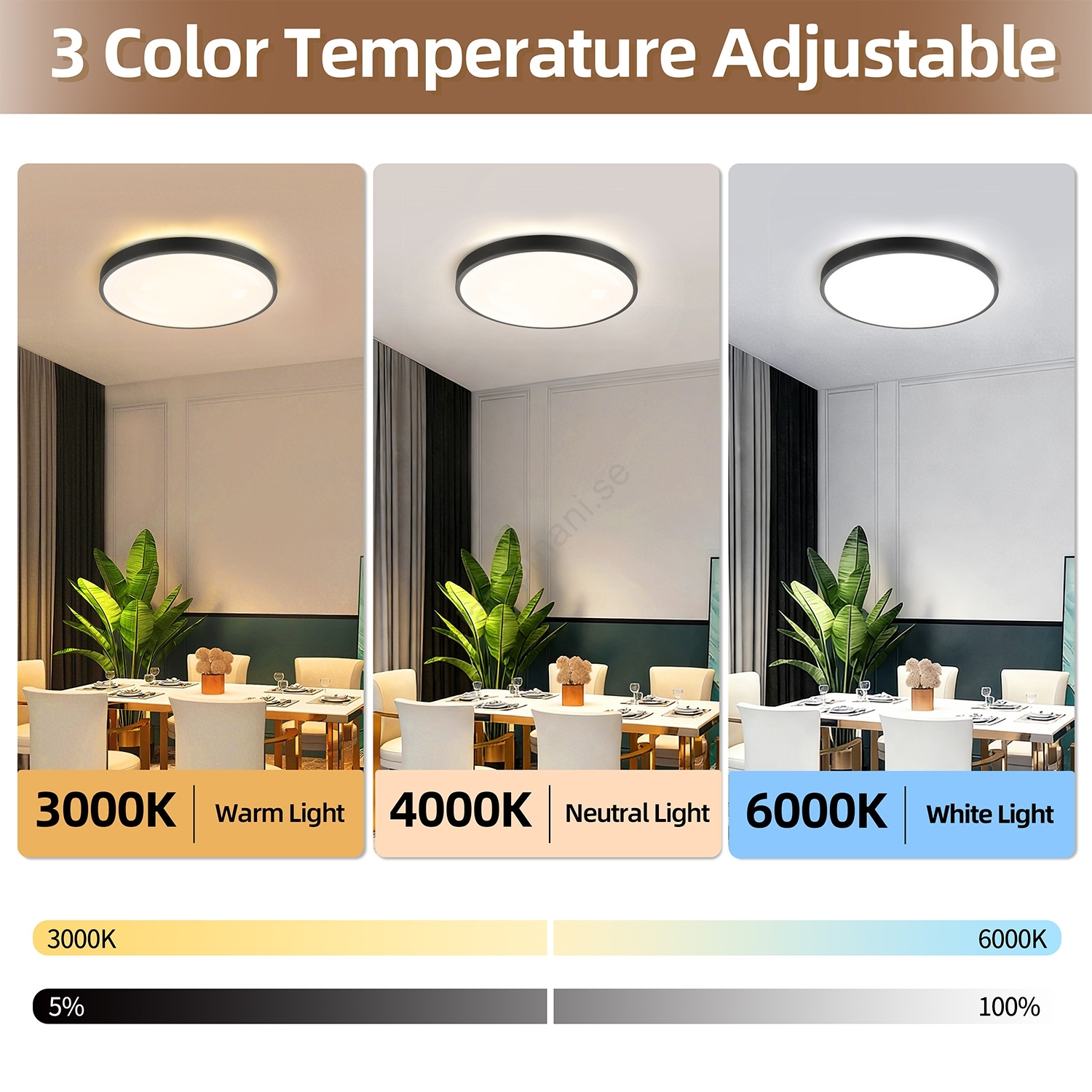 • Färgtemperatur: 3000-6000K.