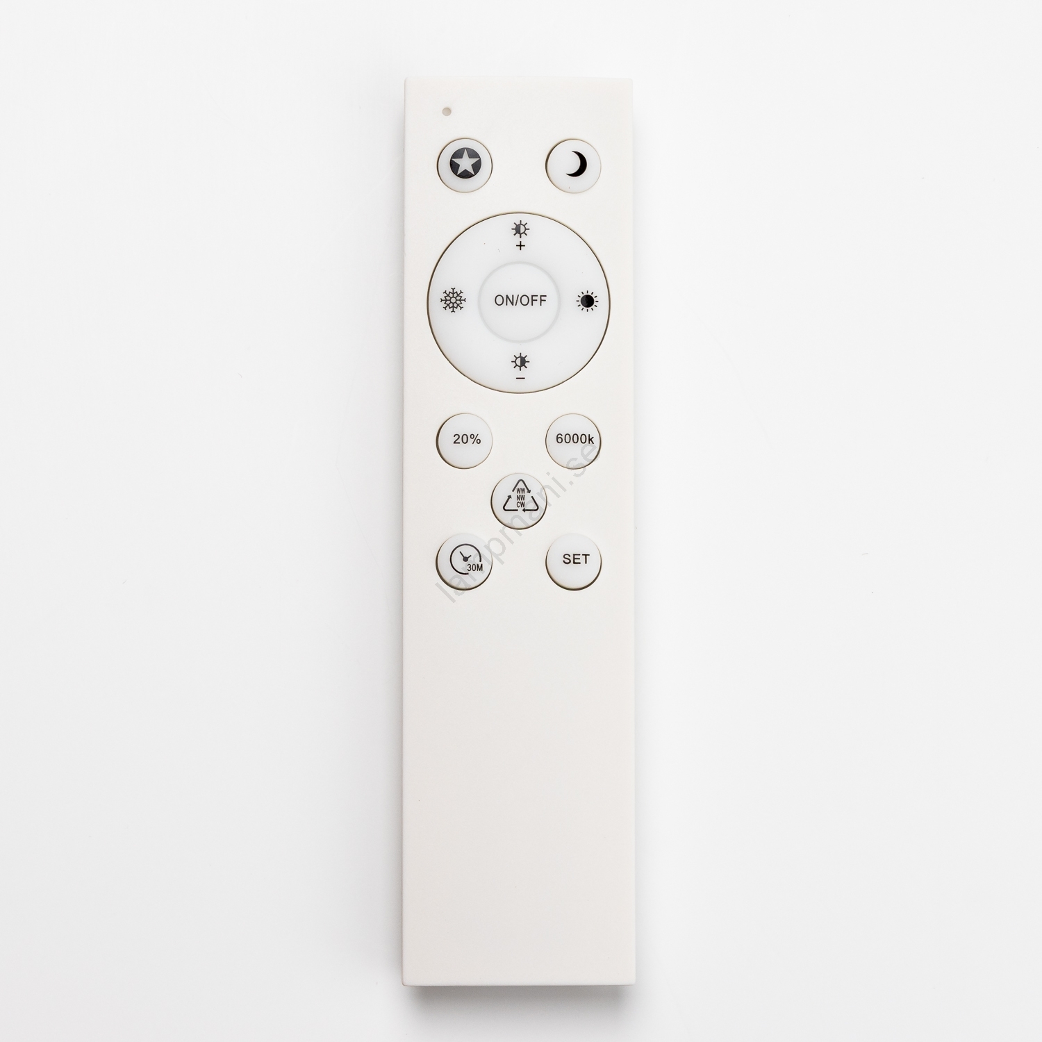 Fjärrkontrollens utseende och funktioner kan variera beroende på ljusets parti eftersom tillverkaren ständigt strävar efter att förnya utbudet.