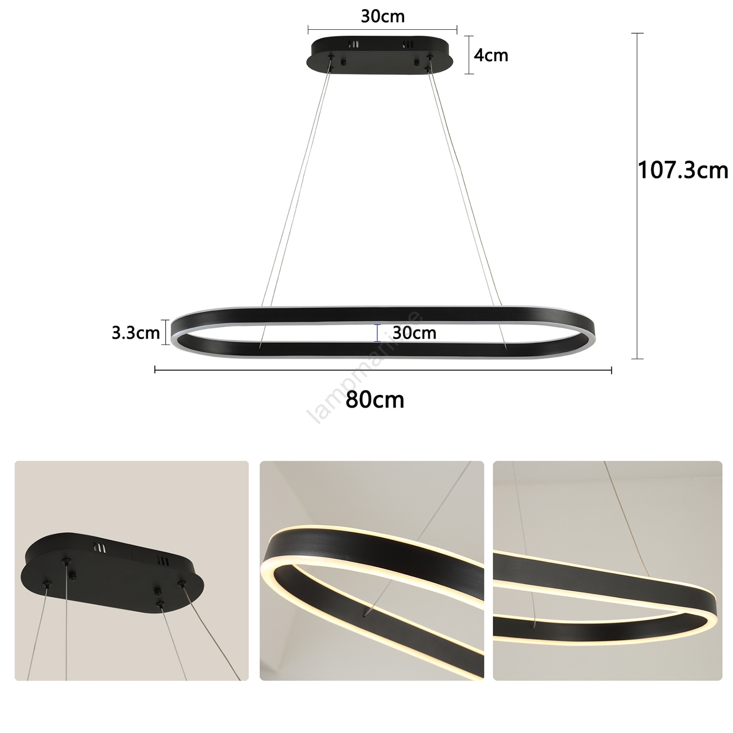 Brilagi - LED-pendel med vajerupphängning PONDIE LED/43W/230V 80x30 cm svart | Lampmani