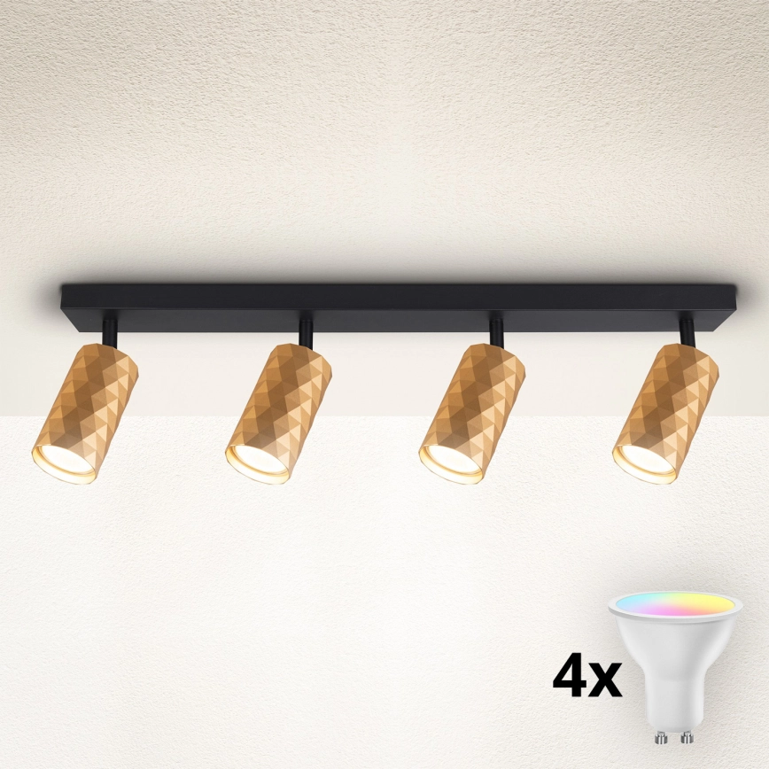 • Brilagi - LED RGBW dimbar spotarmatur SELE 4xGU10/6W/230V 3000K svart/guld + fjärrkontroll