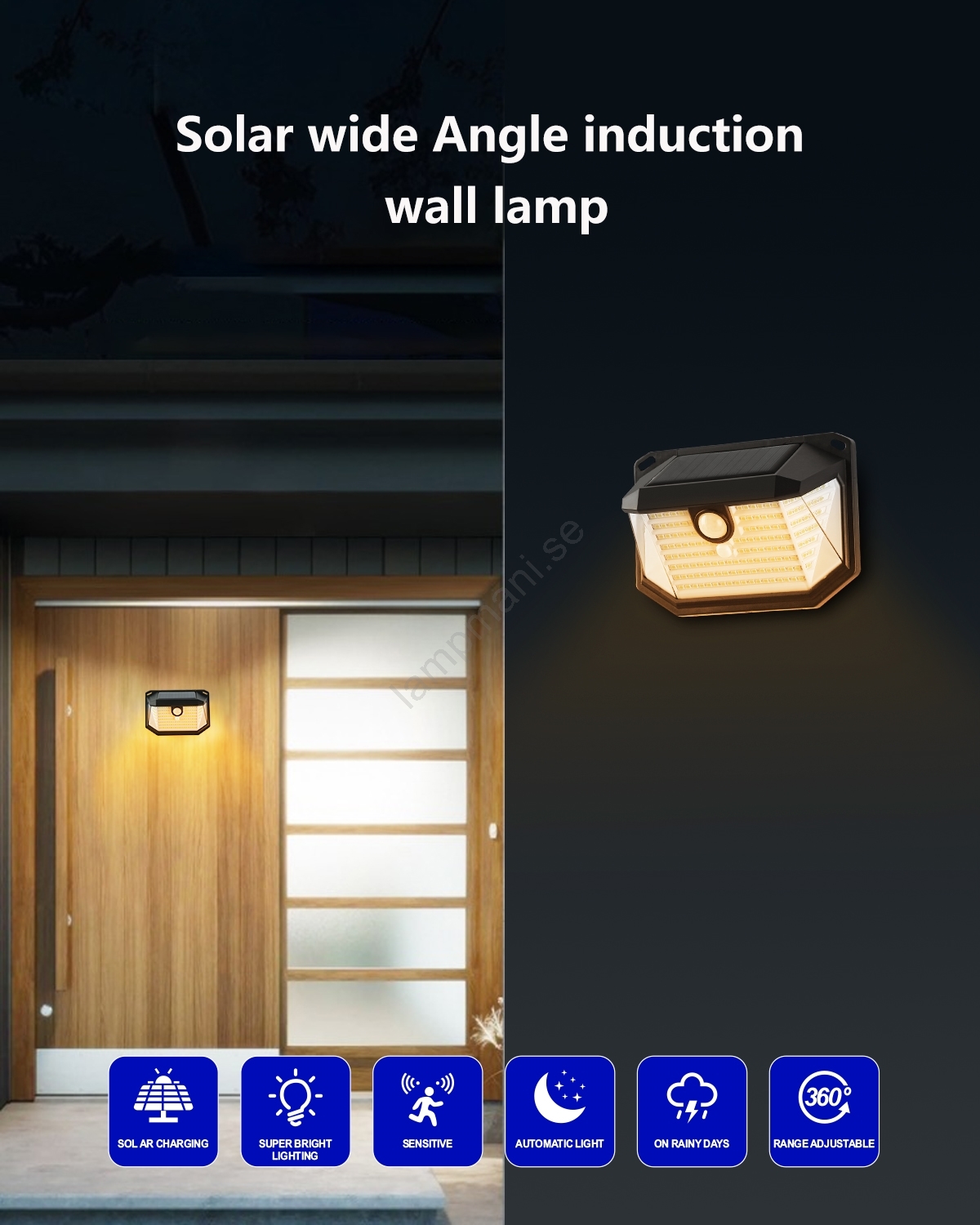 • Energieffektiv solcellsdriven LED-vägglampa som laddas med solenergi och har inga driftskostnader.