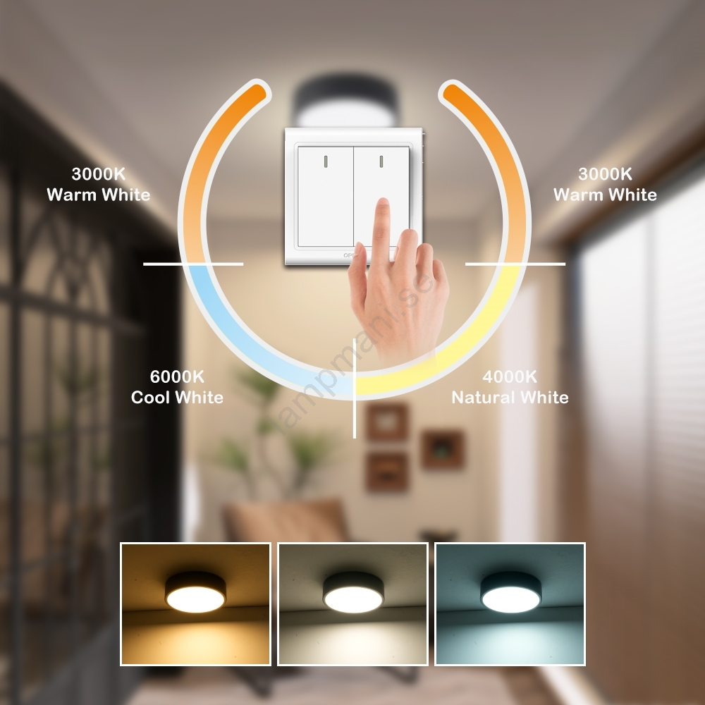 • Ändring av färgtemperatur stegvis med ett enkelt tryck på väggströmbrytaren.