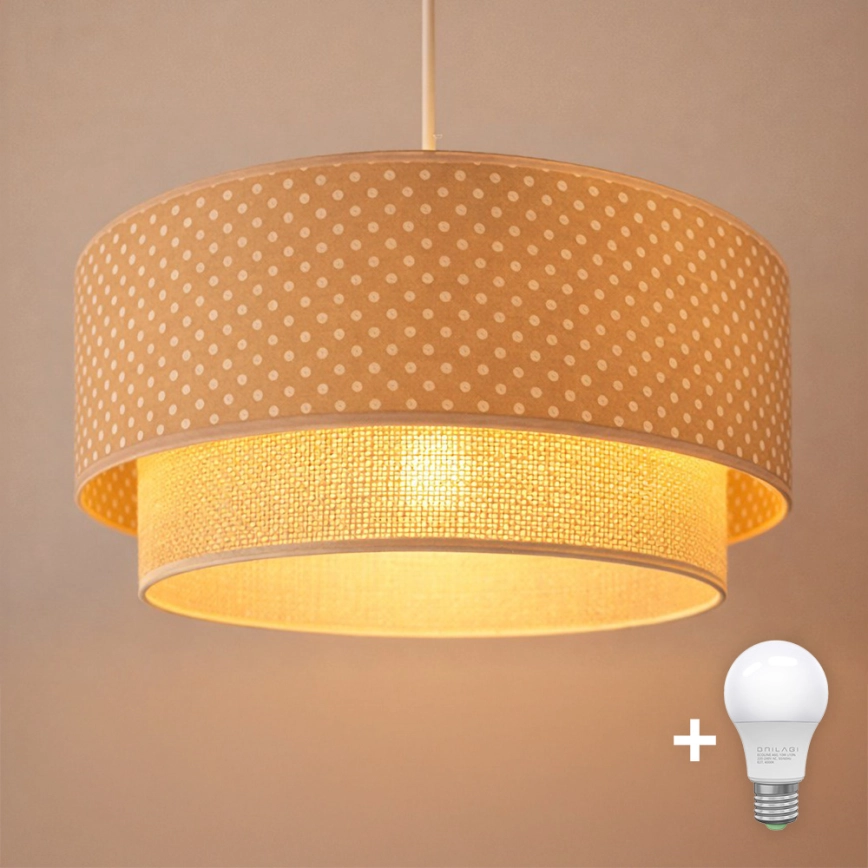 Brilagi-LED takpendel BOHO BOBO 1xE27/60W/230V Ø 40 cm med prickar beige/kräm.