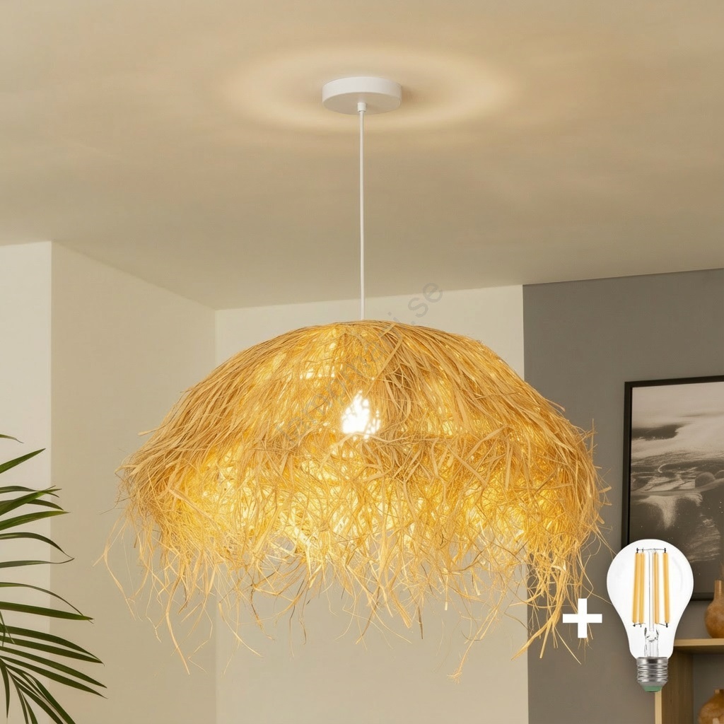 • Brilagi - LED-pendellampa på vajer CERIA BOHO 1xE27/40W/230V Ø 60 cm raffia